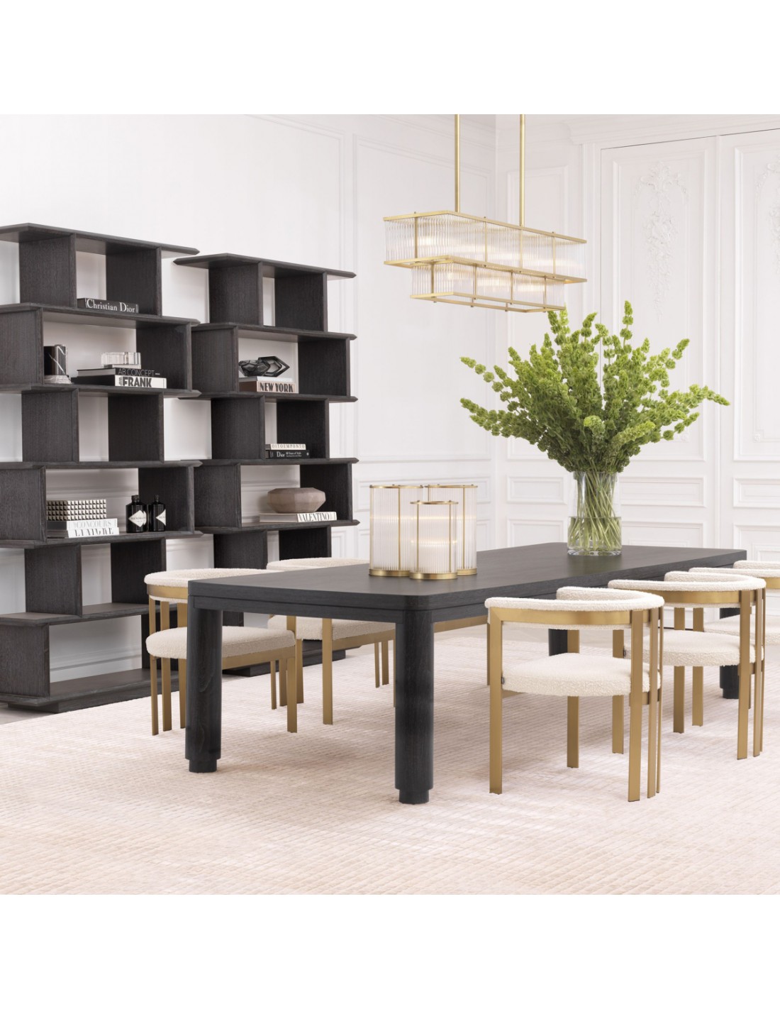 Eichholtz Atelier spisebord udført i et luksuriøst og moderne design, fremstillet i kulgrå egetræ og egetræsfinér. Spisebordet måler 76 cm i højden og 300 x 115 cm i bredde og dybde.