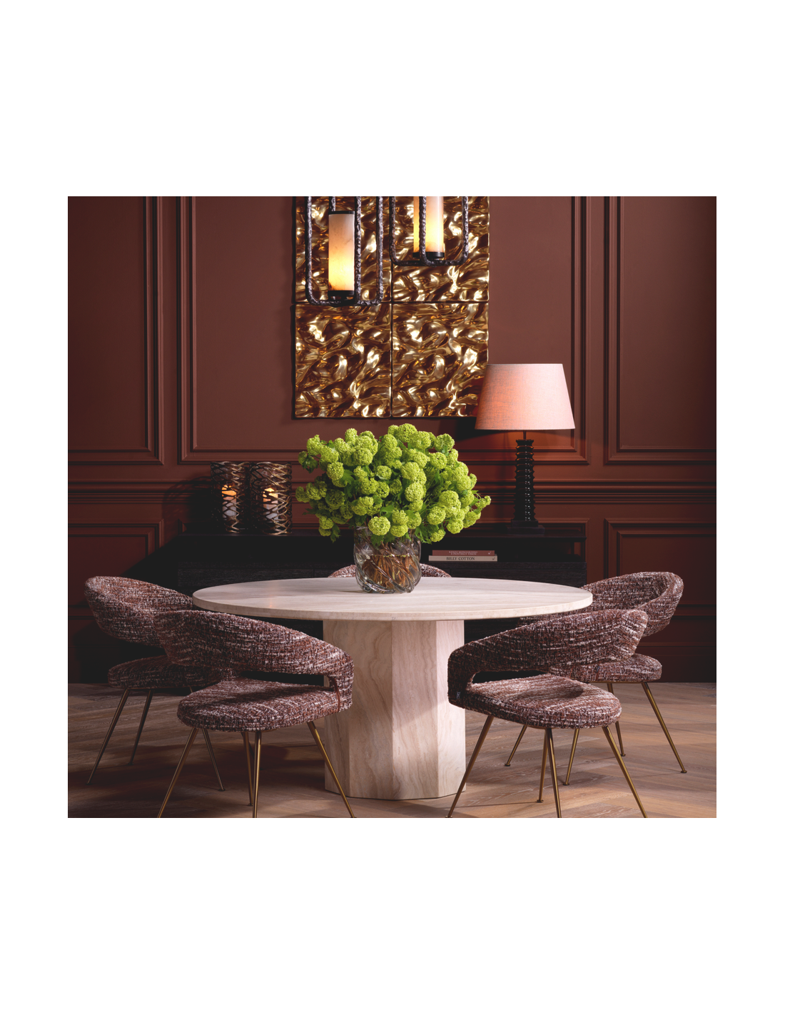 Eichholtz Florence rundt spisebord udført i et luksuriøst og moderne design, fremstillet i travertin sten. Spisebordet måler 75,5 cm i højden og 150 cm i diameter.