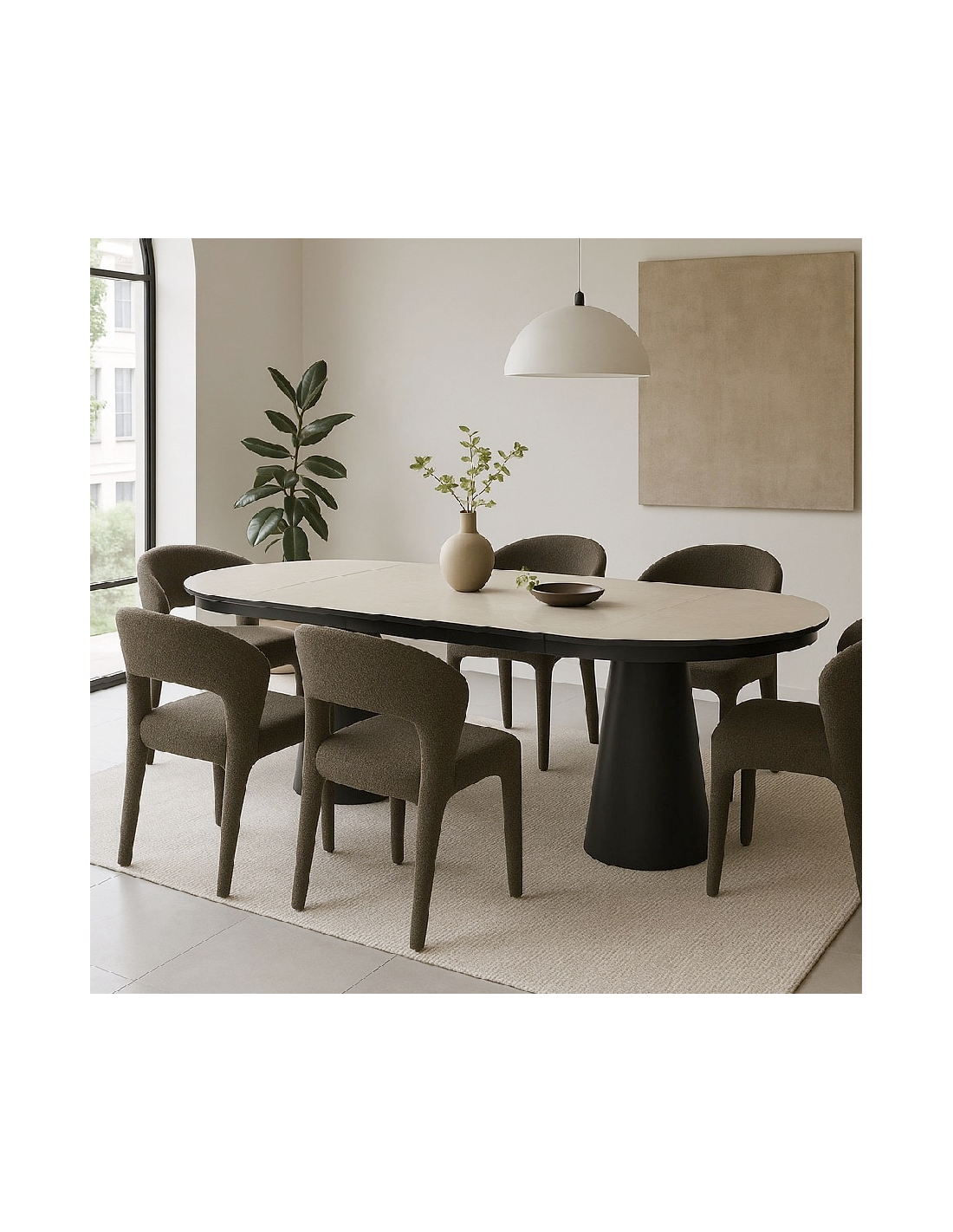 PEARL Rundt spisebord med udtræk i MDF og HPL Ø110 x 110 - 240 cm - Sort/Lysegrå steneffekt