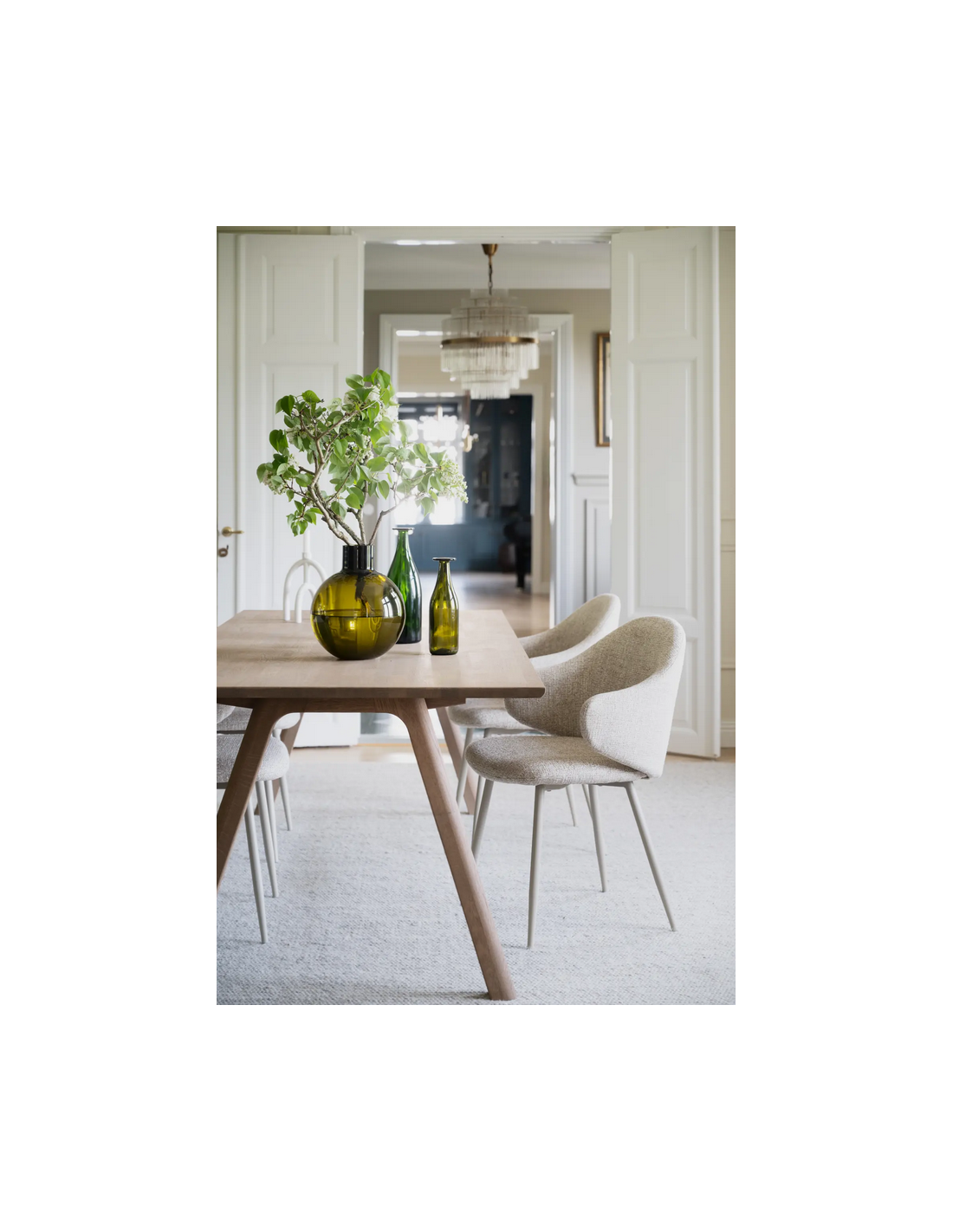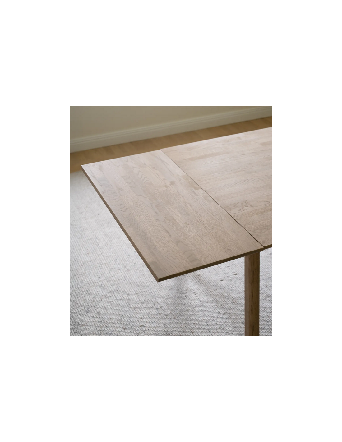 Clapperton spisebord fra Svenske Rowico Home, udført i et moderne og Skandinavisk design af sandfarvet egetræ. Spisebordet måler 74 cm i højden og 220 x 95 cm i bredde og dybde. Der kan fås tillægsplader til spisebordet.