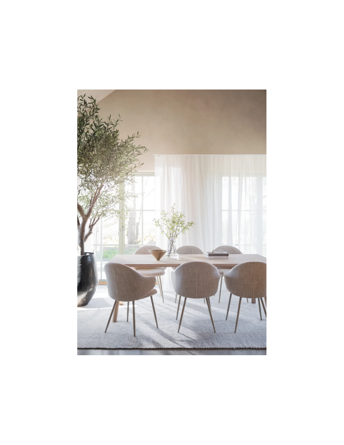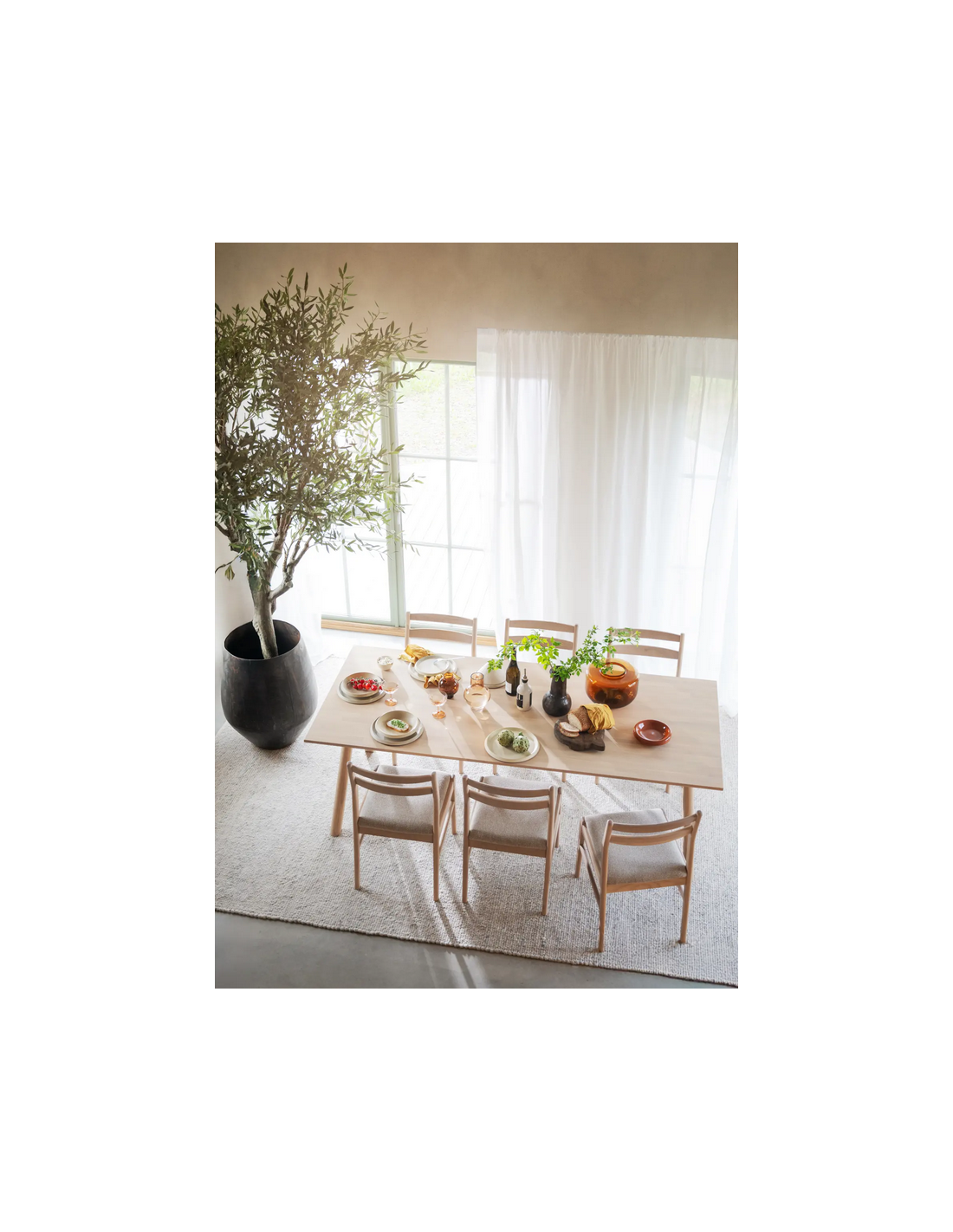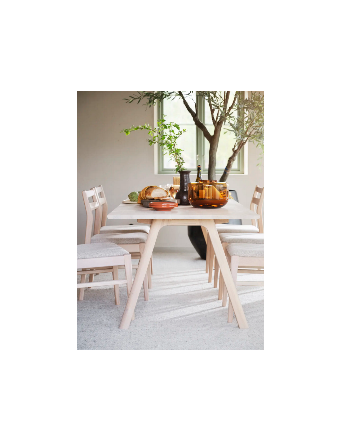 Clapperton spisebord fra Svenske Rowico Home, udført i et moderne og Skandinavisk design af white wash egetræ. Spisebordet måler 74 cm i højden og 220 x 95 cm i bredde og dybde. Der kan fås tillægsplader til spisebordet.