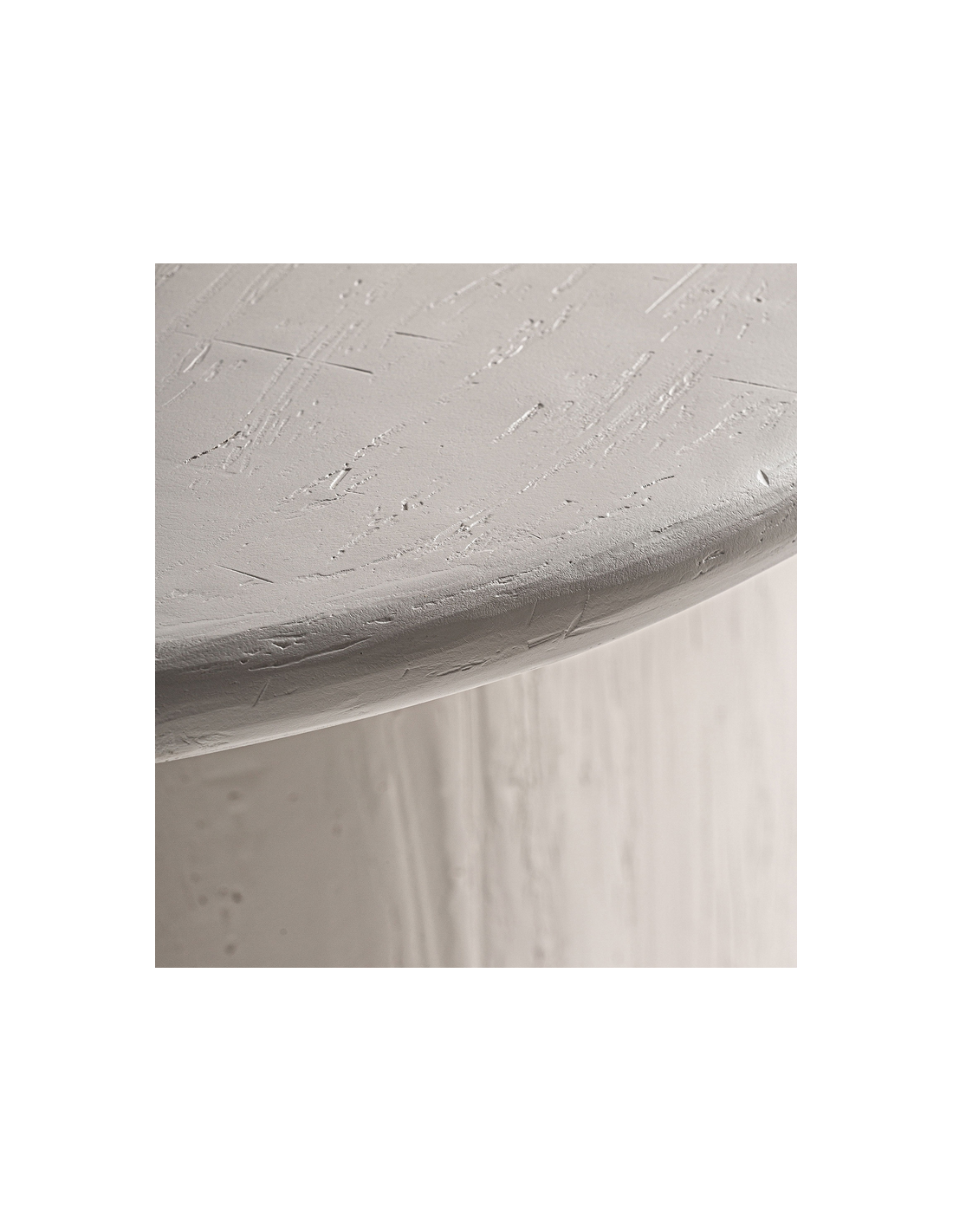 INHA Ovalt spisebord udført i et design fremstillet af rustikt off-white MDF og mangotræ. Spisebordet måler 76 cm i højden og 200 x 100 cm i bredde og dybde.