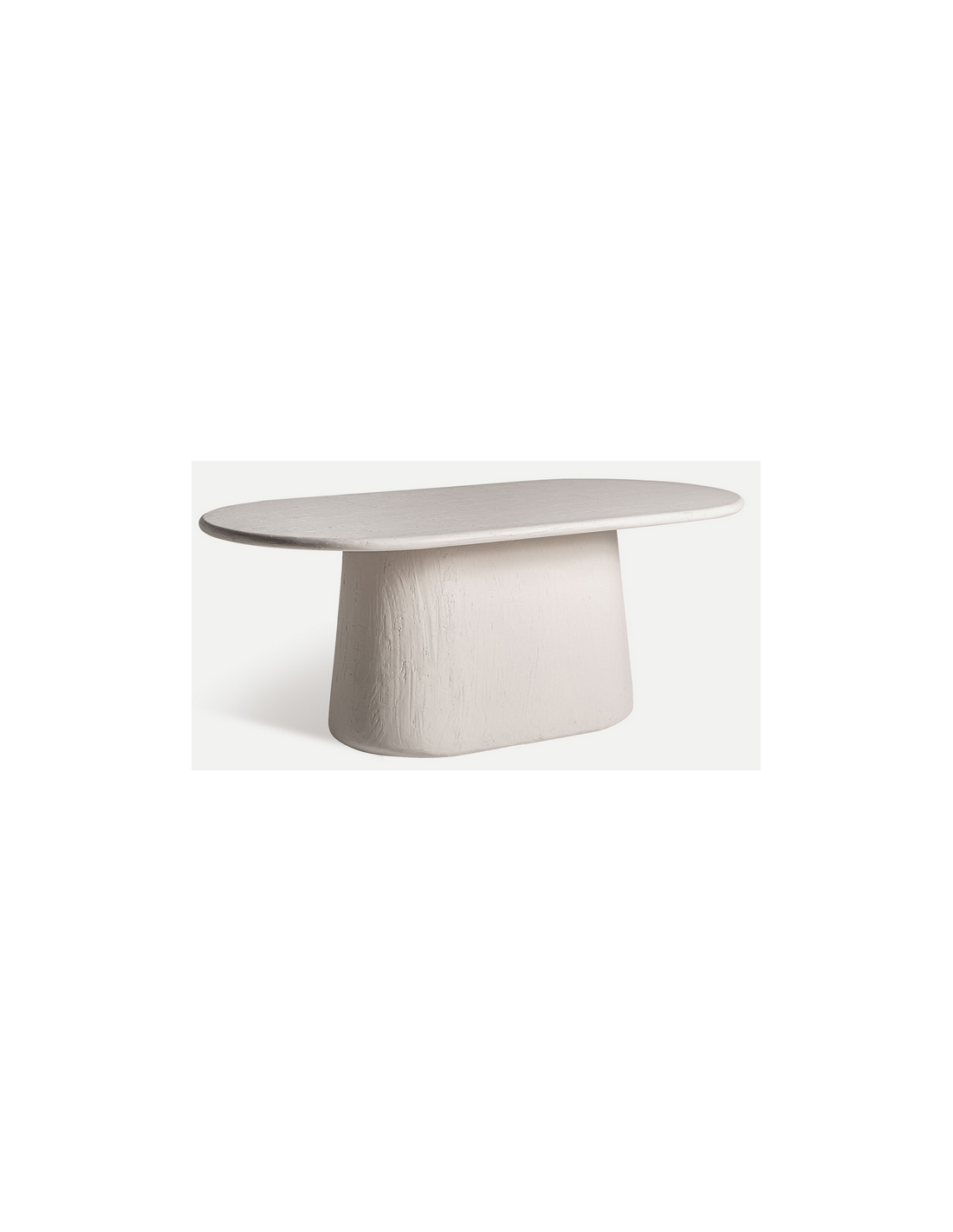 INHA Ovalt spisebord i MDF og mangotræ 200 x 100 cm - Rustik off-white