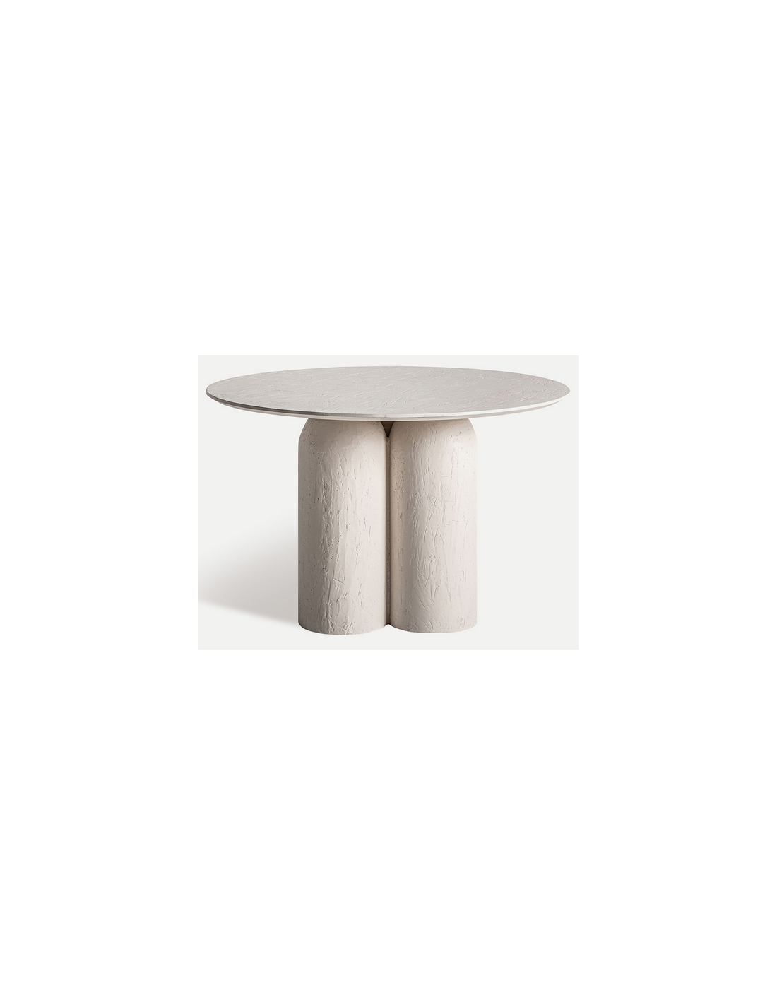 INHA Rundt spisebord i MDF og mangotræ Ø120 cm - Rustik off-white