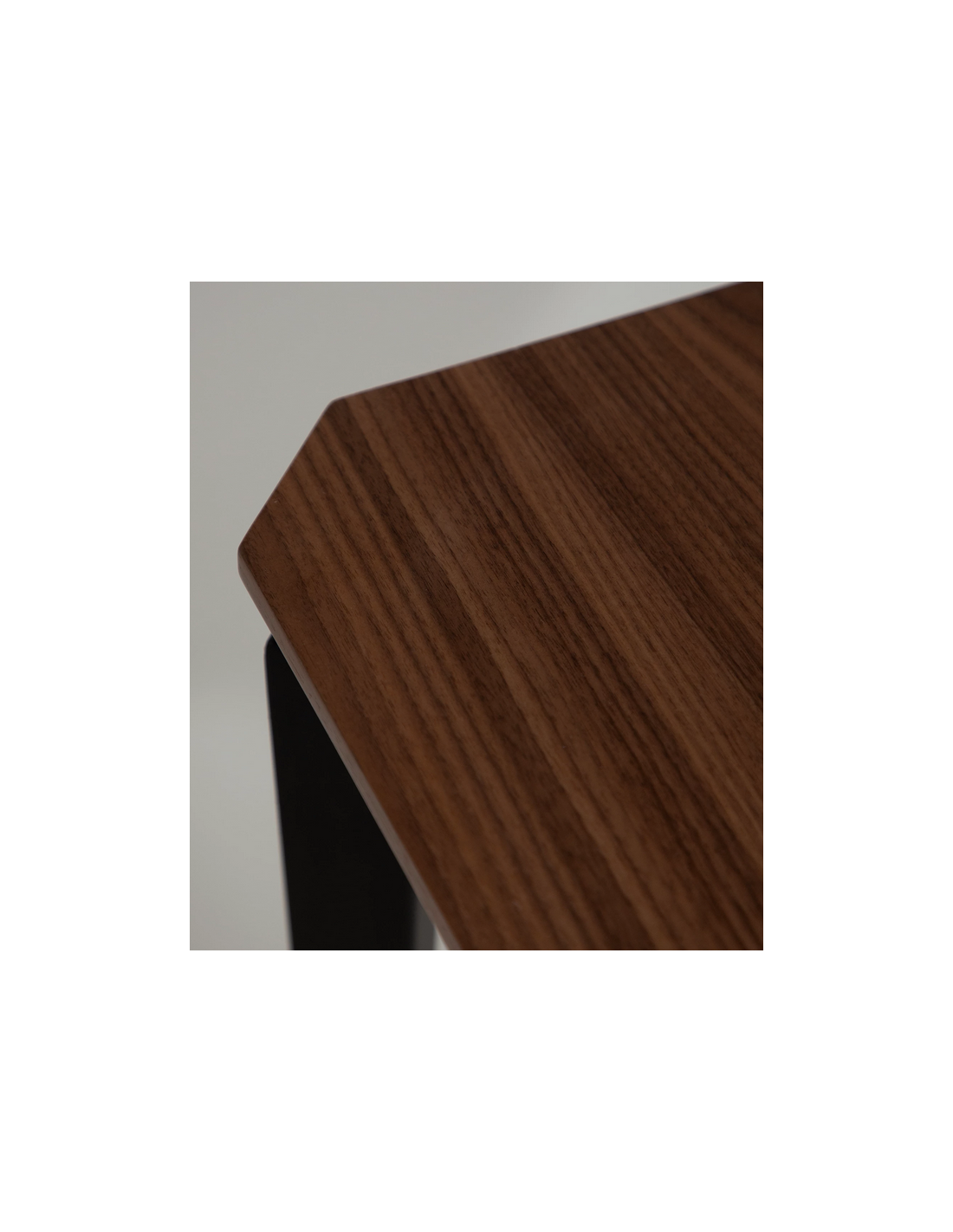 EDGE Spisebord med udtræk fra danske Dan-Form, udført i et moderne design af sortlakeret metal og valnøddefinér. Spisebordet måler 75 cm i højden og 200 - 300 x 100 cm i bredde og dybde.