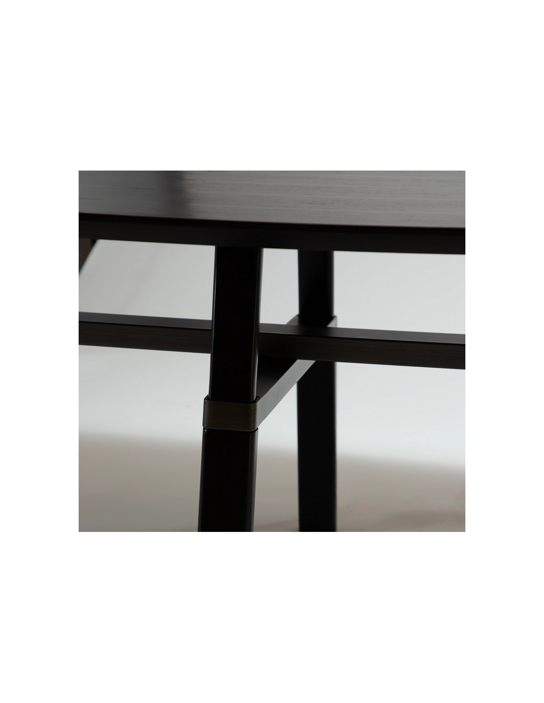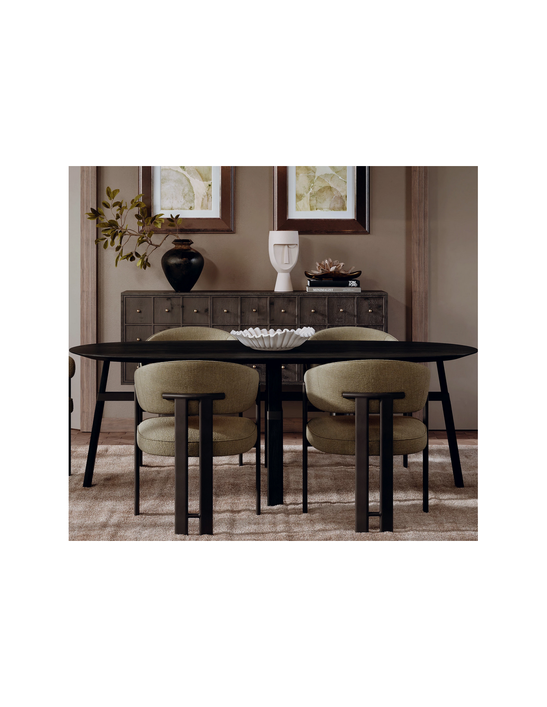 CROSS Ovalt spisebord i metal og asktræfinér 220 x 111,5 cm - Antik børstet tin/Sort