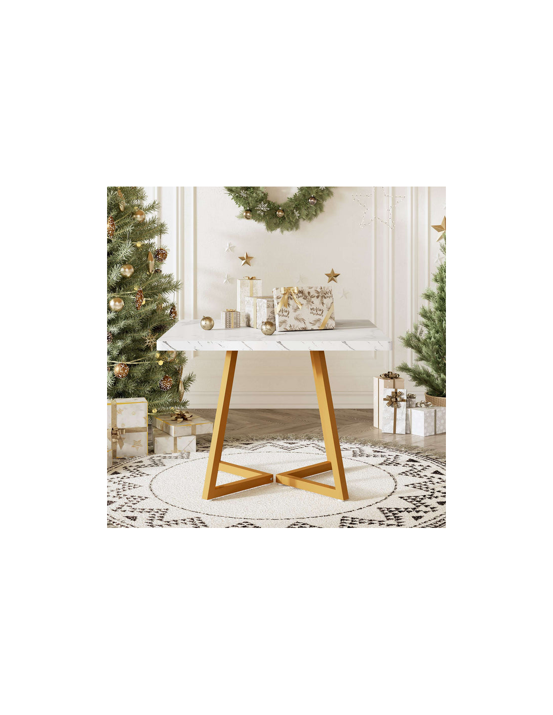 Firkantet spisebord i metal og møbelplade 80 x 80 cm - Guld/Hvid marmoriseret