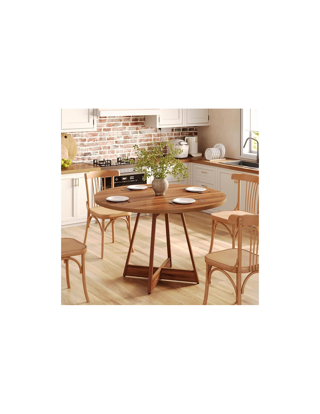 Rundt spisebord i metal og møbelplade Ø100 cm - Brun