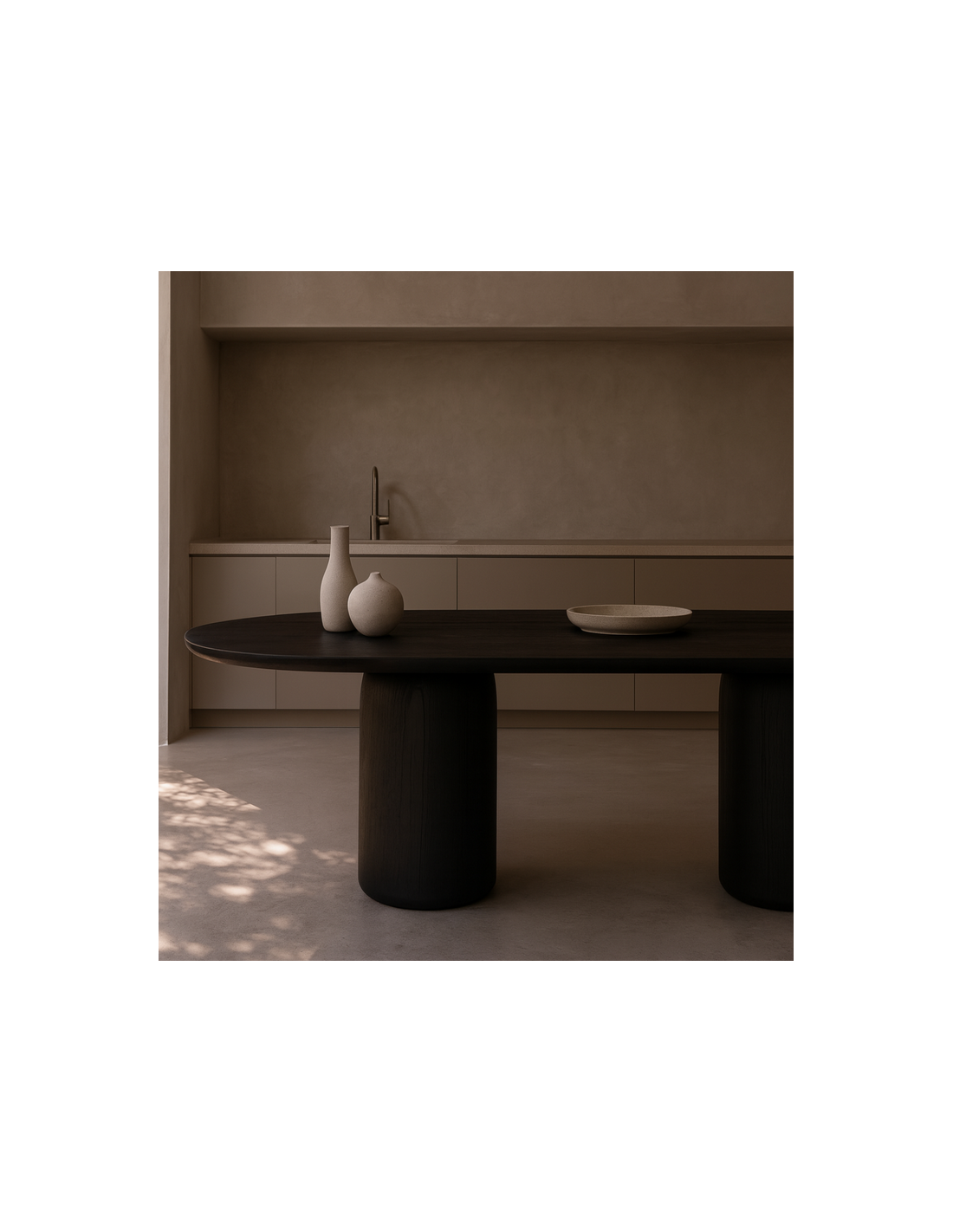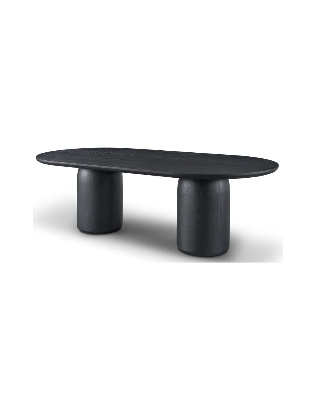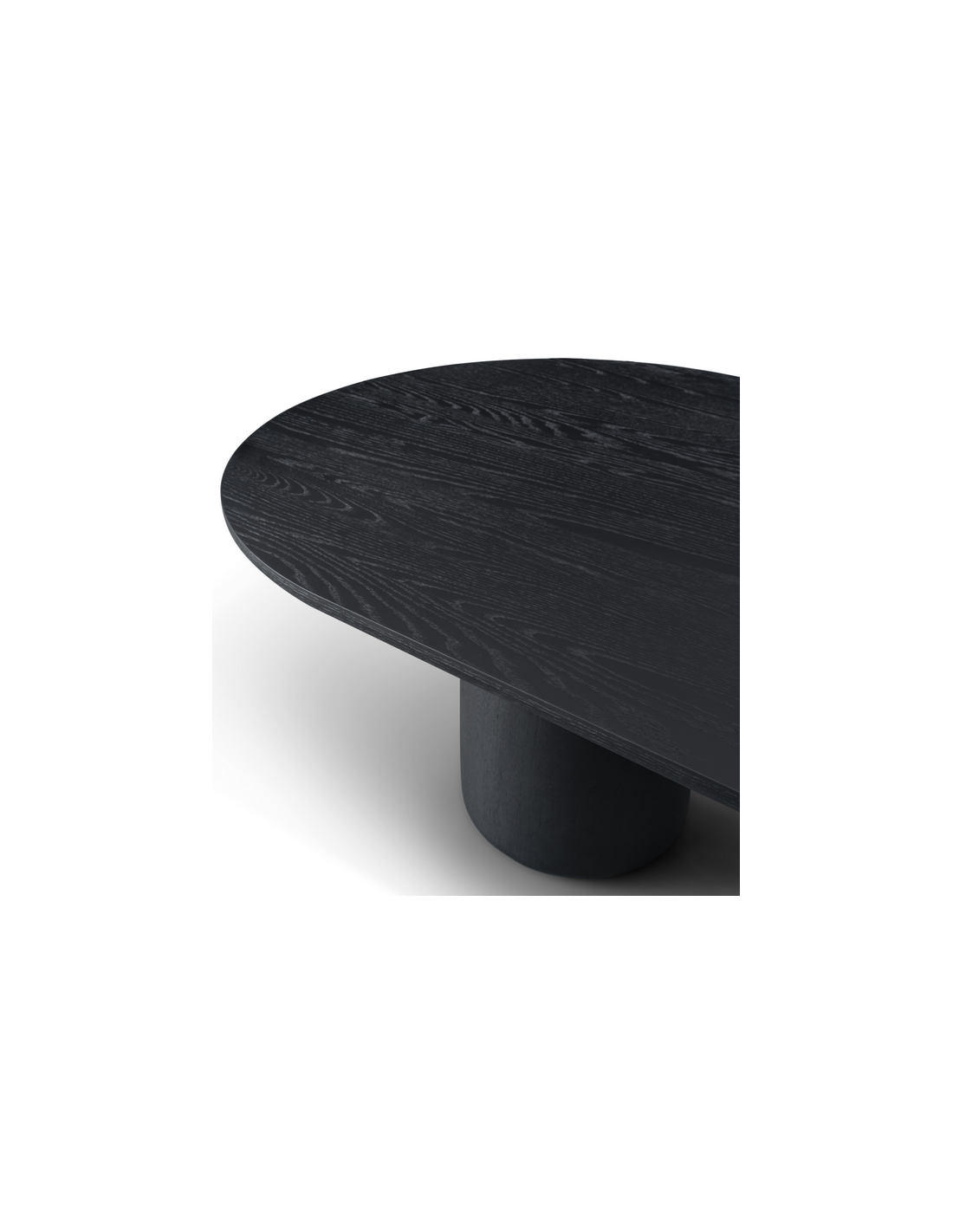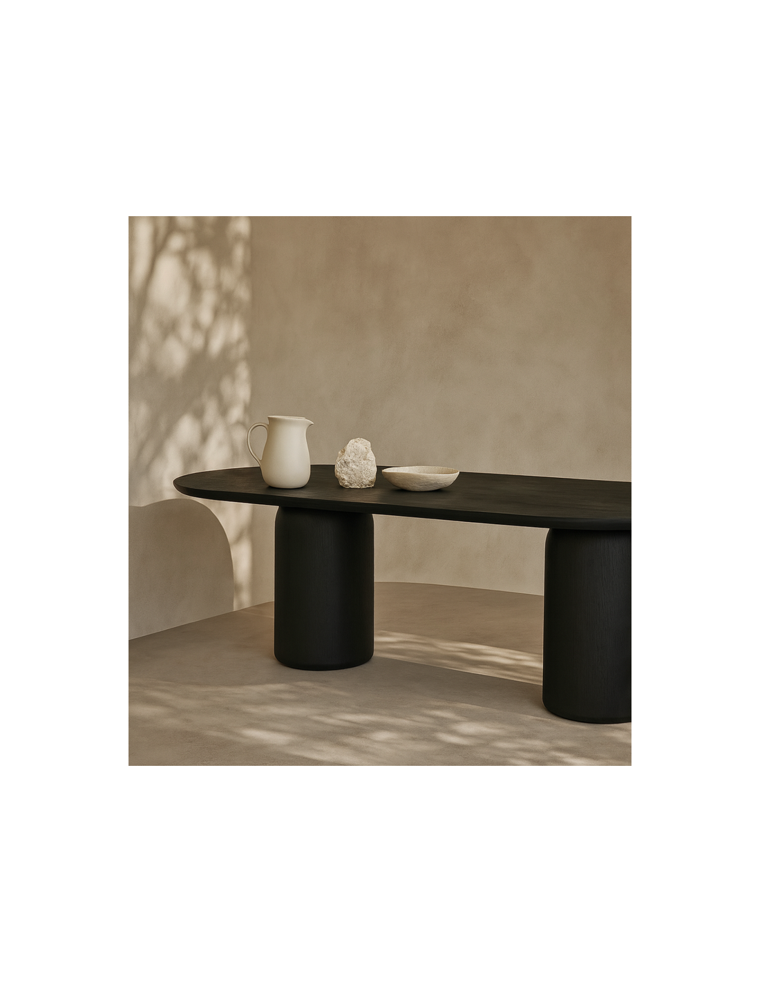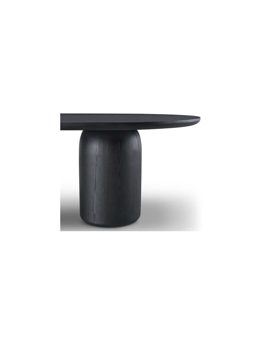 BASILCA Ovalt spisebord udført i et moderne design, fremstillet af mat sortlakeret egetræsfinér. Spisebordet måler 74 cm i højden og 270 x 120 cm i bredde og dybde. Spisebordets søjleben måler 40 cm i diameter.