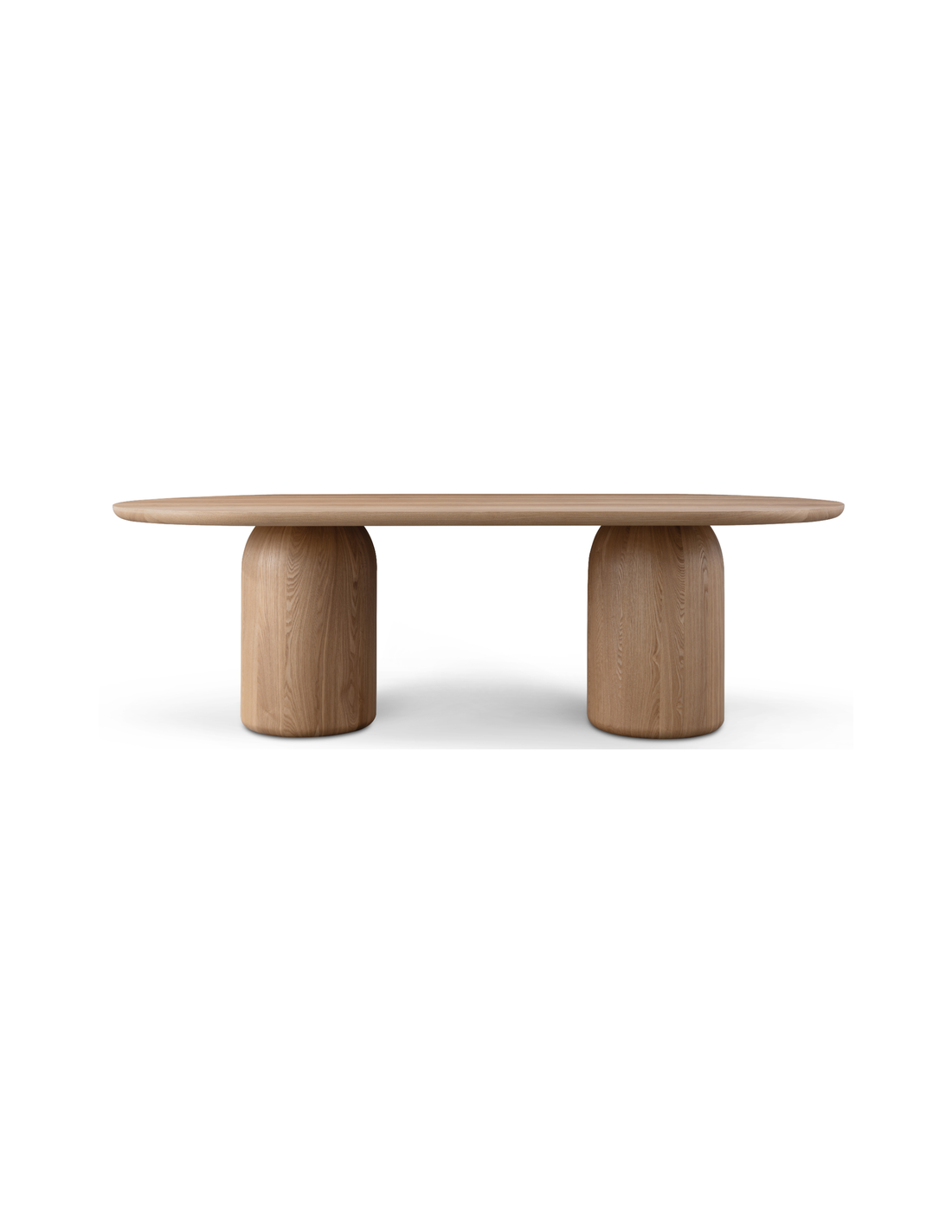 BASILCA Ovalt spisebord udført i et moderne design, fremstillet af asket egetræsfinér, der giver en let matteret nuance. Spisebordet måler 74 cm i højden og 240 x 120 cm i bredde og dybde. Spisebordets søjleben måler 40 cm i diameter.