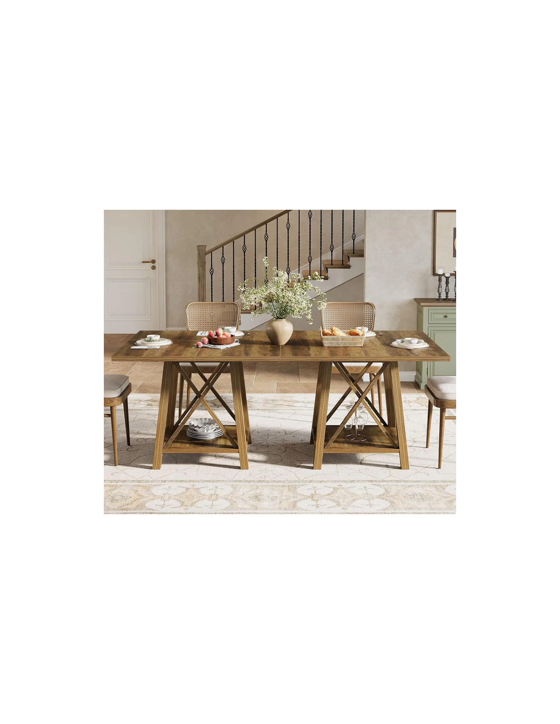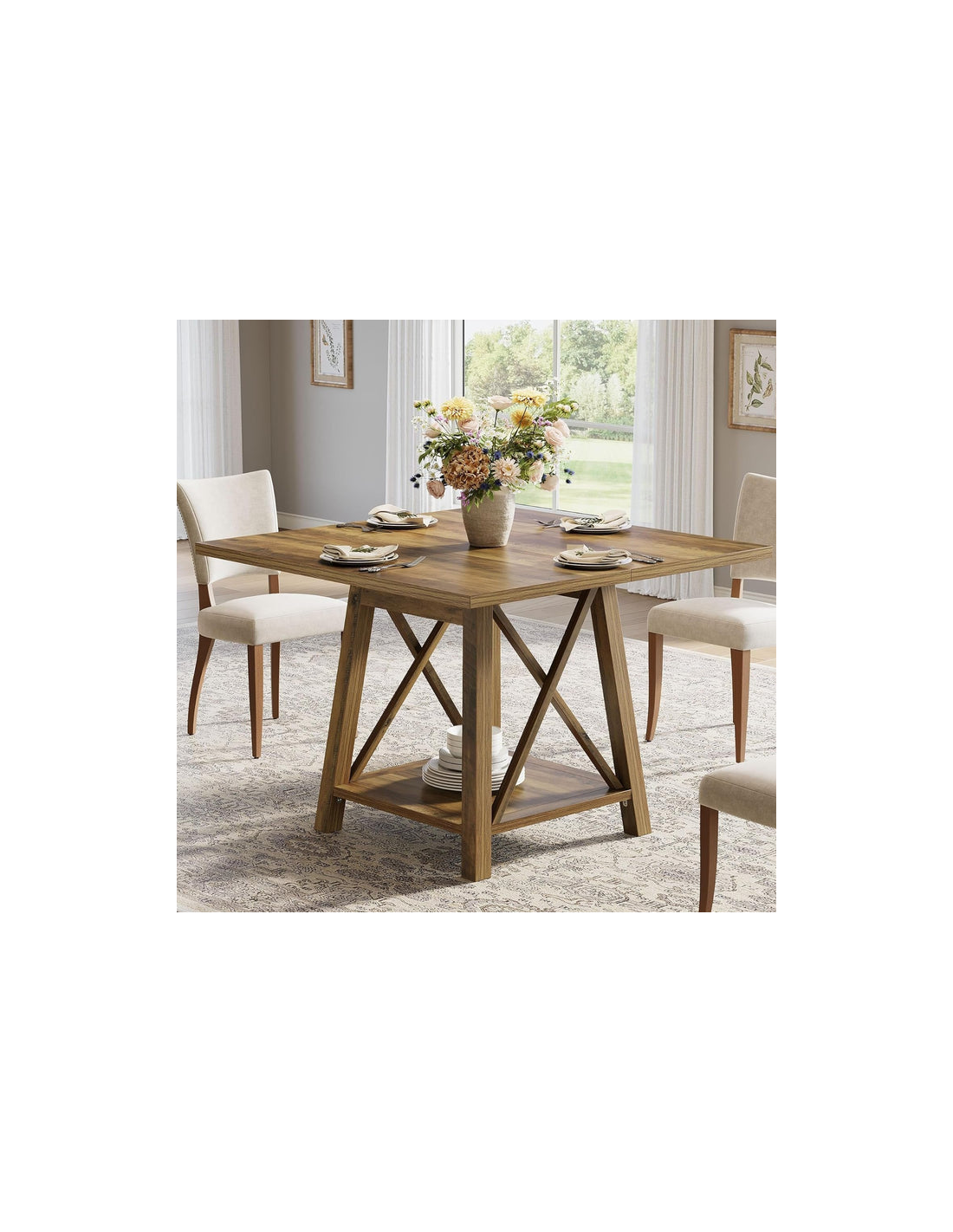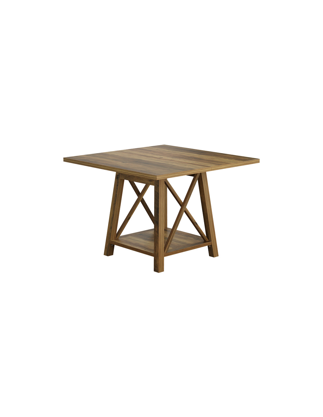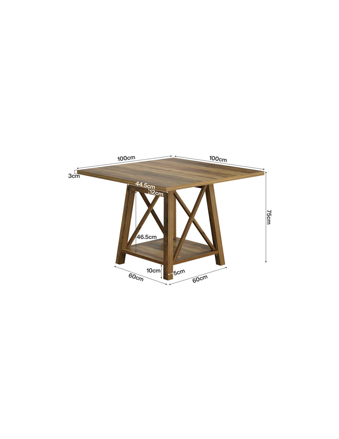 Firkantet spisebord udført i et design af naturbrun MDF. Bordet måler 75 cm i højden og 100 x 100 cm i bredde og dybde.
