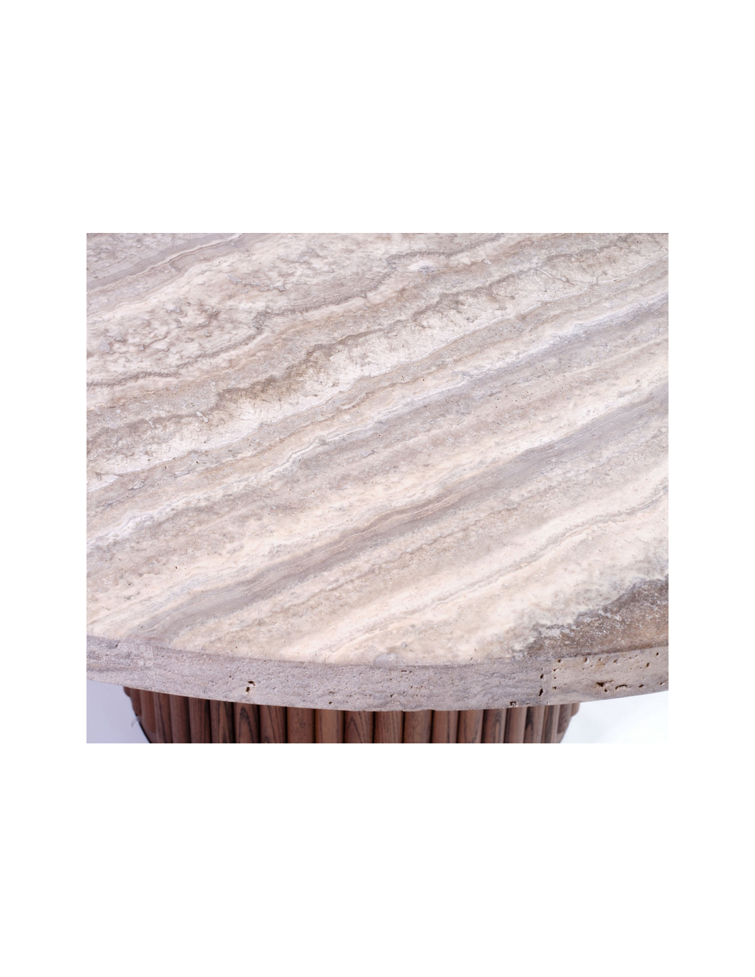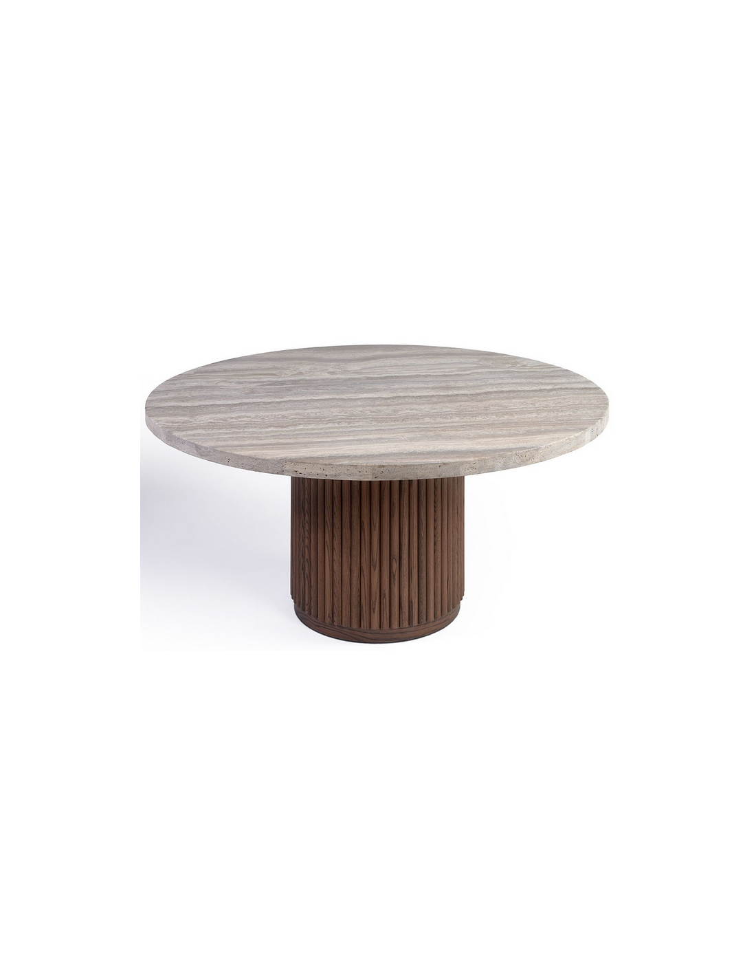 Rundt spisebord i MDF og egetræ og travertin sten Ø150 cm - Brun/Gråbeige travertin