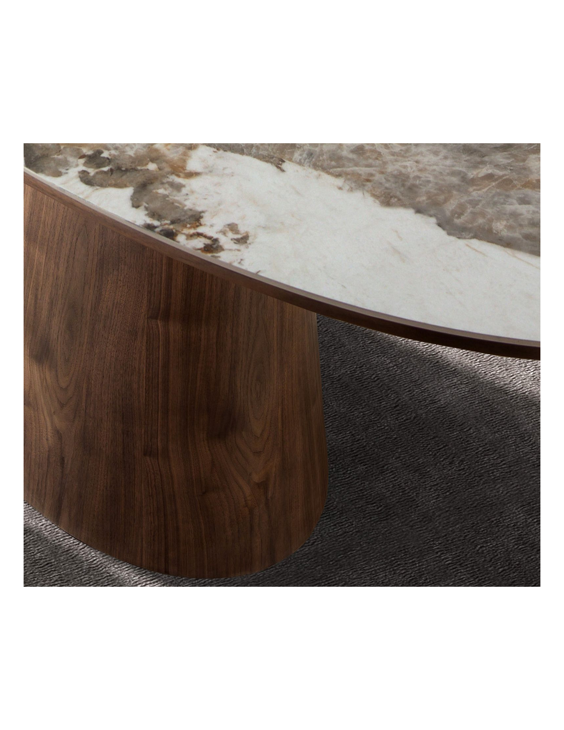 Ovalt spisebord i valnøddefinér og porcelæn 220 x 112 cm - Valnød/Hvid marmor