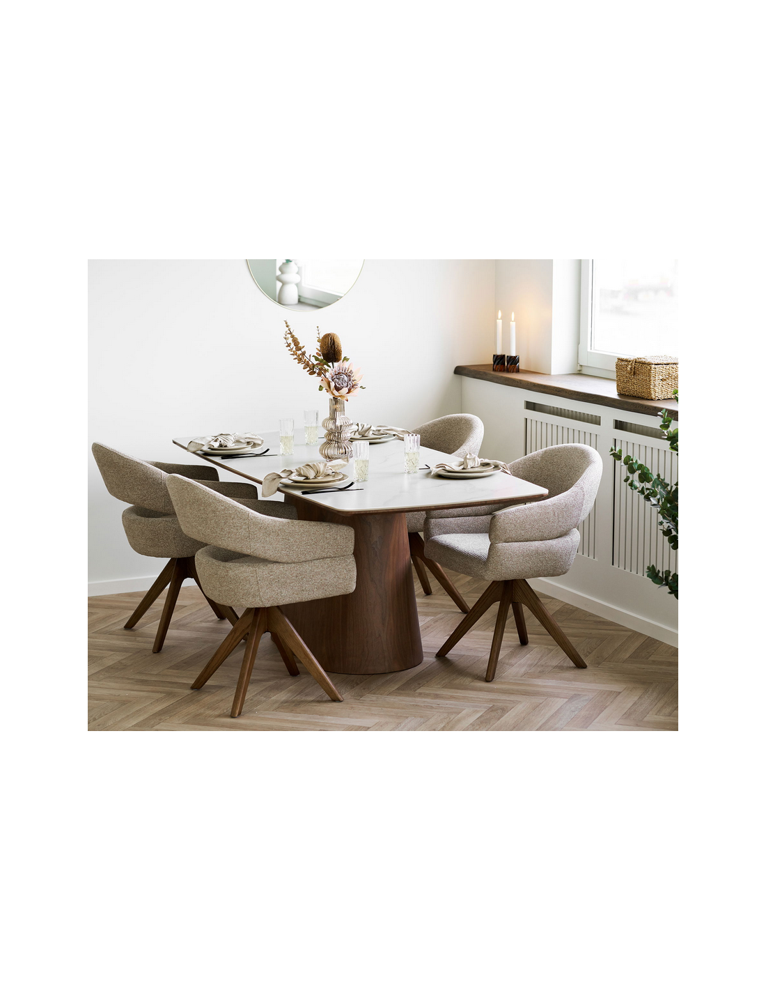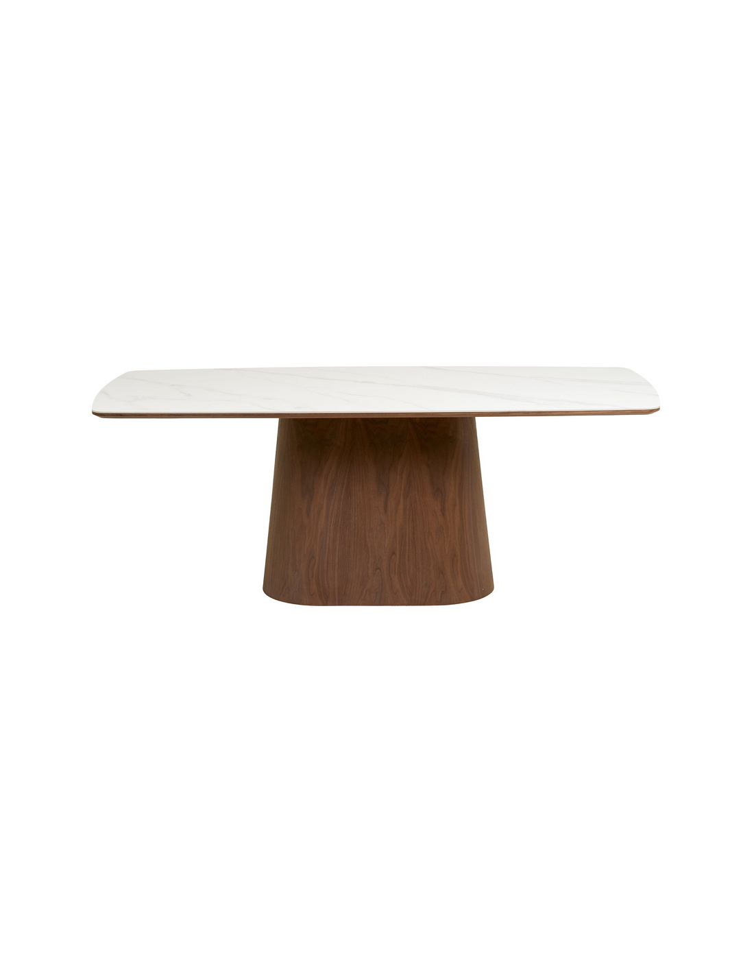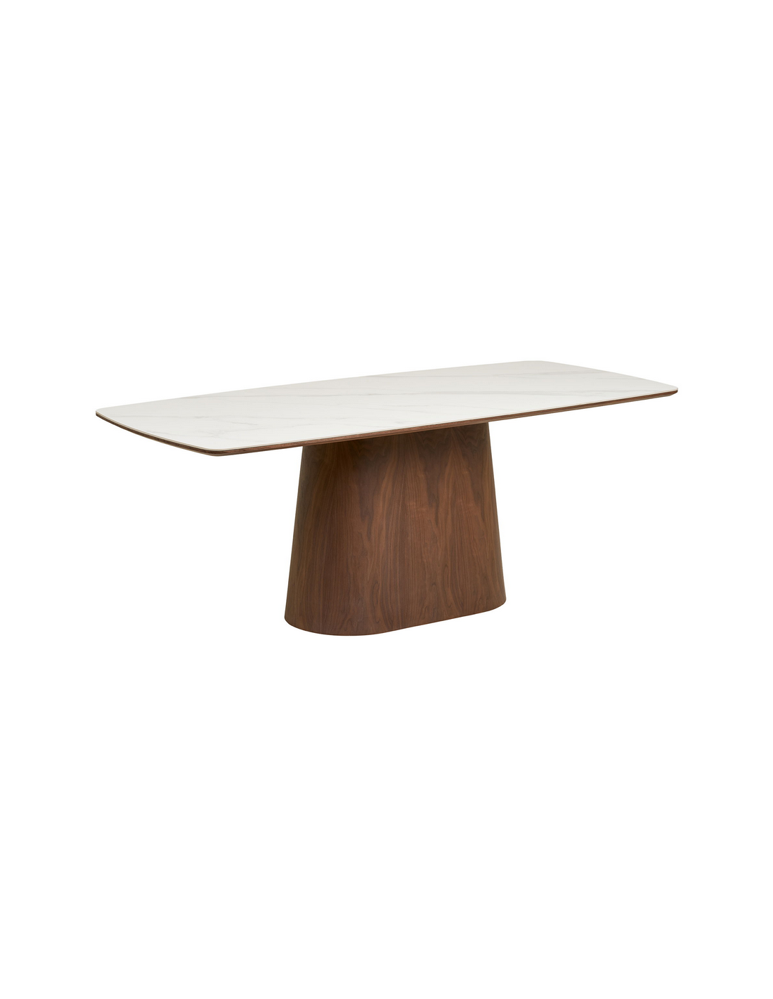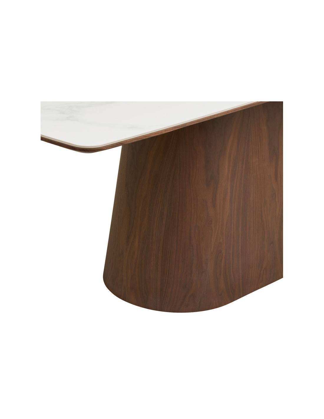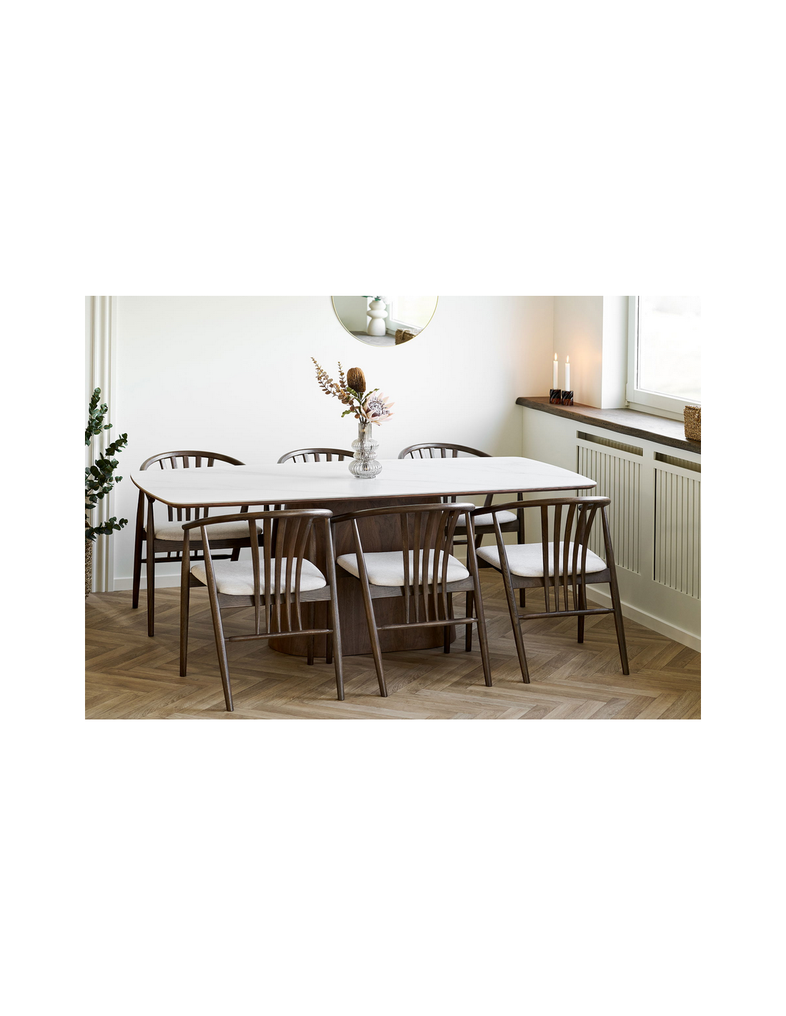 Spisebord i askfinér og keramik 200 x 90 cm - Mørkebrun/Hvid marmoriseret