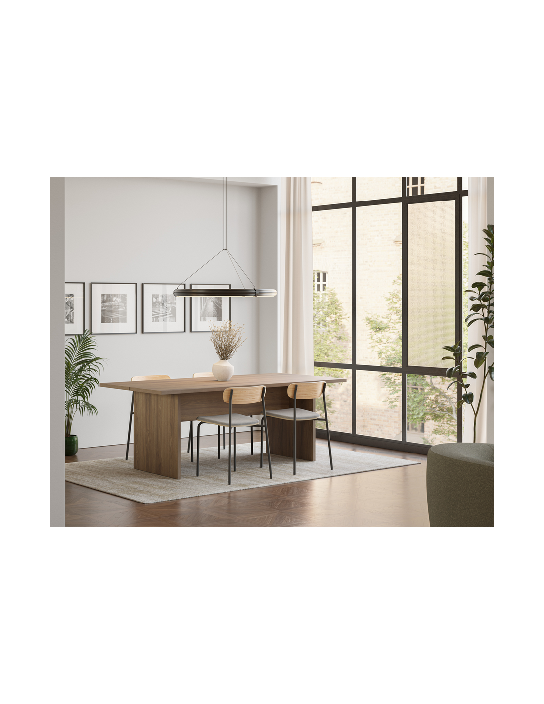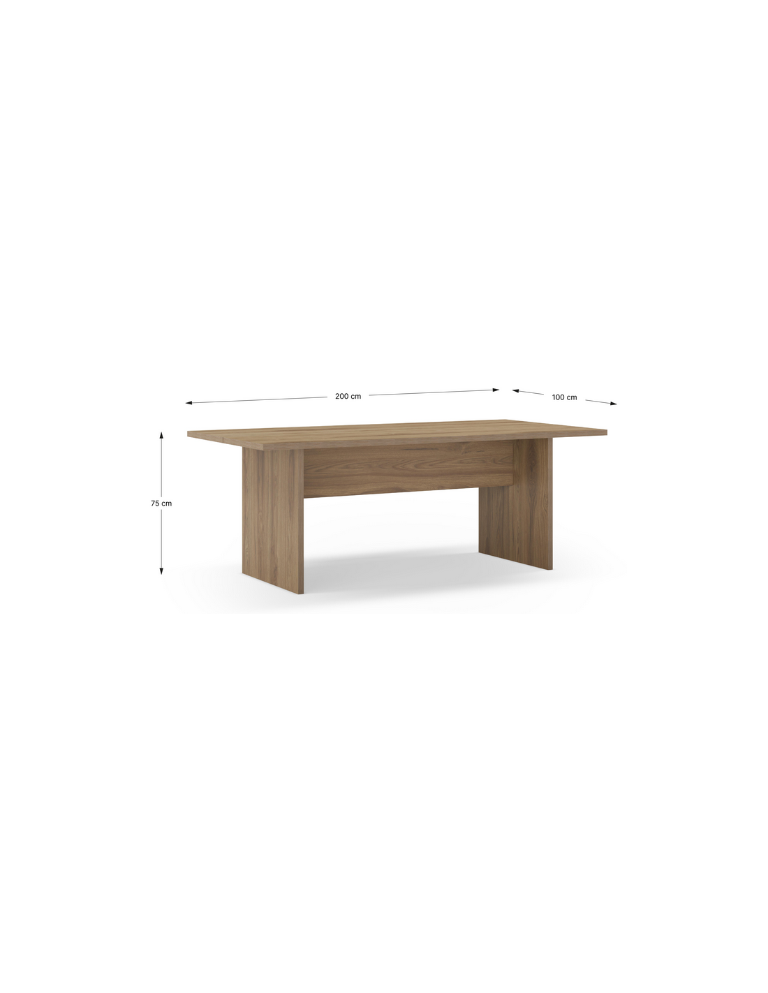 LOANA Spisebord udført i et Skandinavisk design af mørk egetræsfarvet melamin. Spisebordet måler 75 cm i højden og 200 x 100 cm i bredde og dybde.