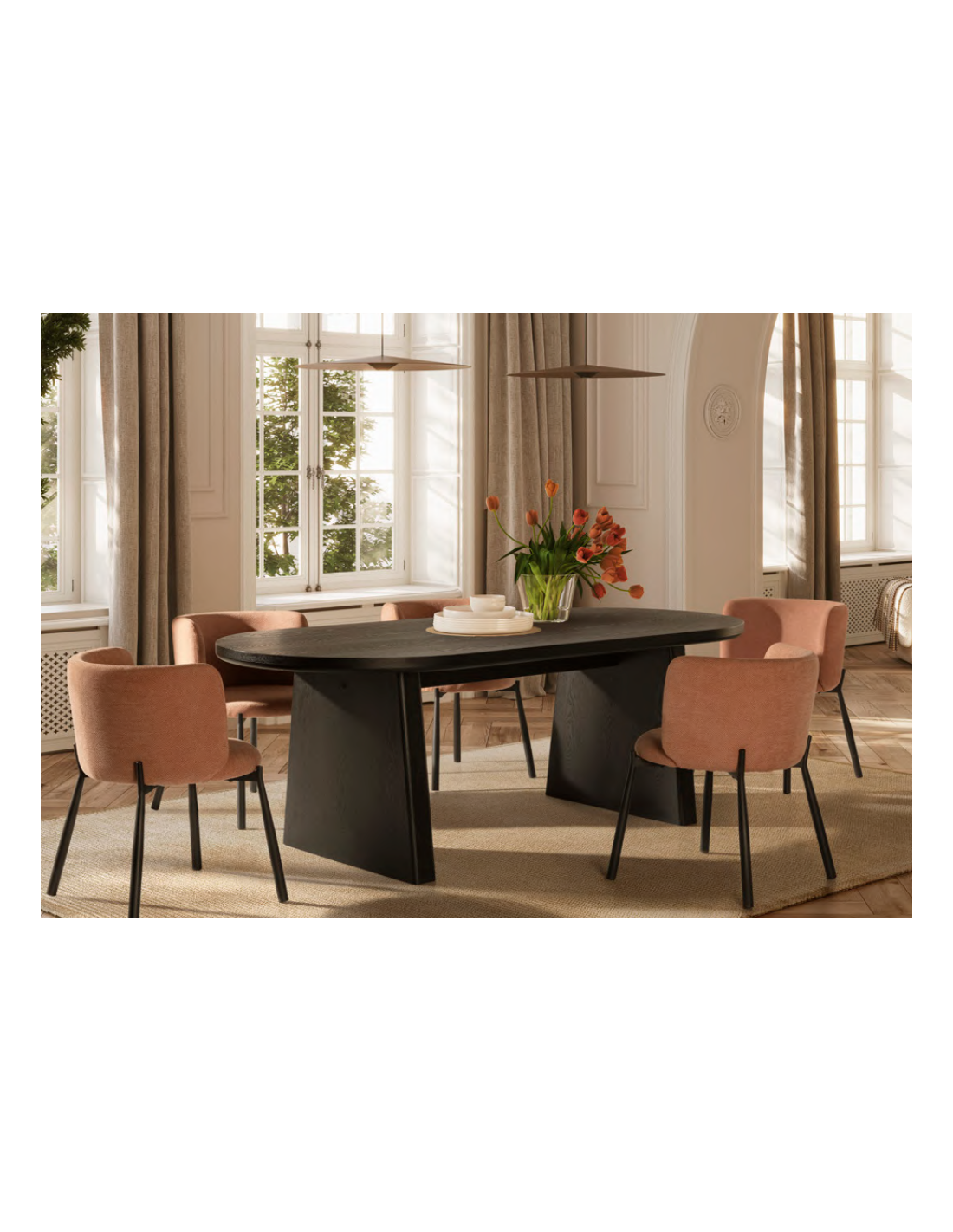 BLAIR Ovalt spisebord udført i et Skandinavisk design af sort MDF. Spisebordet måler 76 cm i højden og 220 x 100 cm i bredde og dybde.