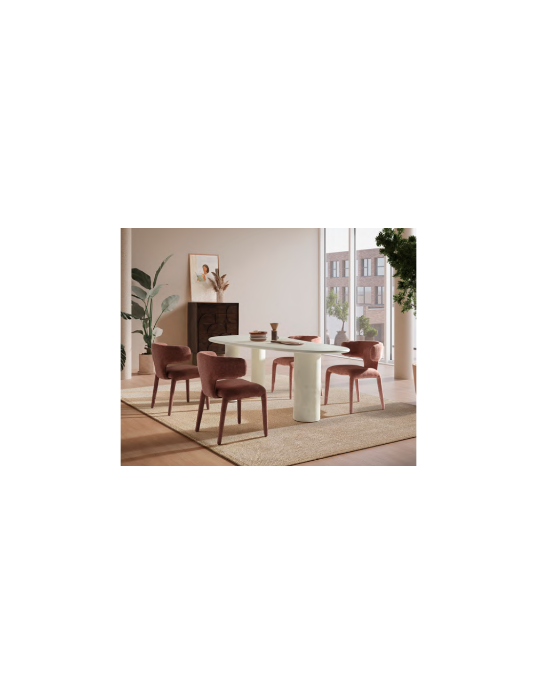 DAILA Organisk spisebord udført i et Skandinavisk design af cremefarvet resin og MDF. Spisebordet måler 76 cm i højden og 201 x 100 cm i bredde og dybde.