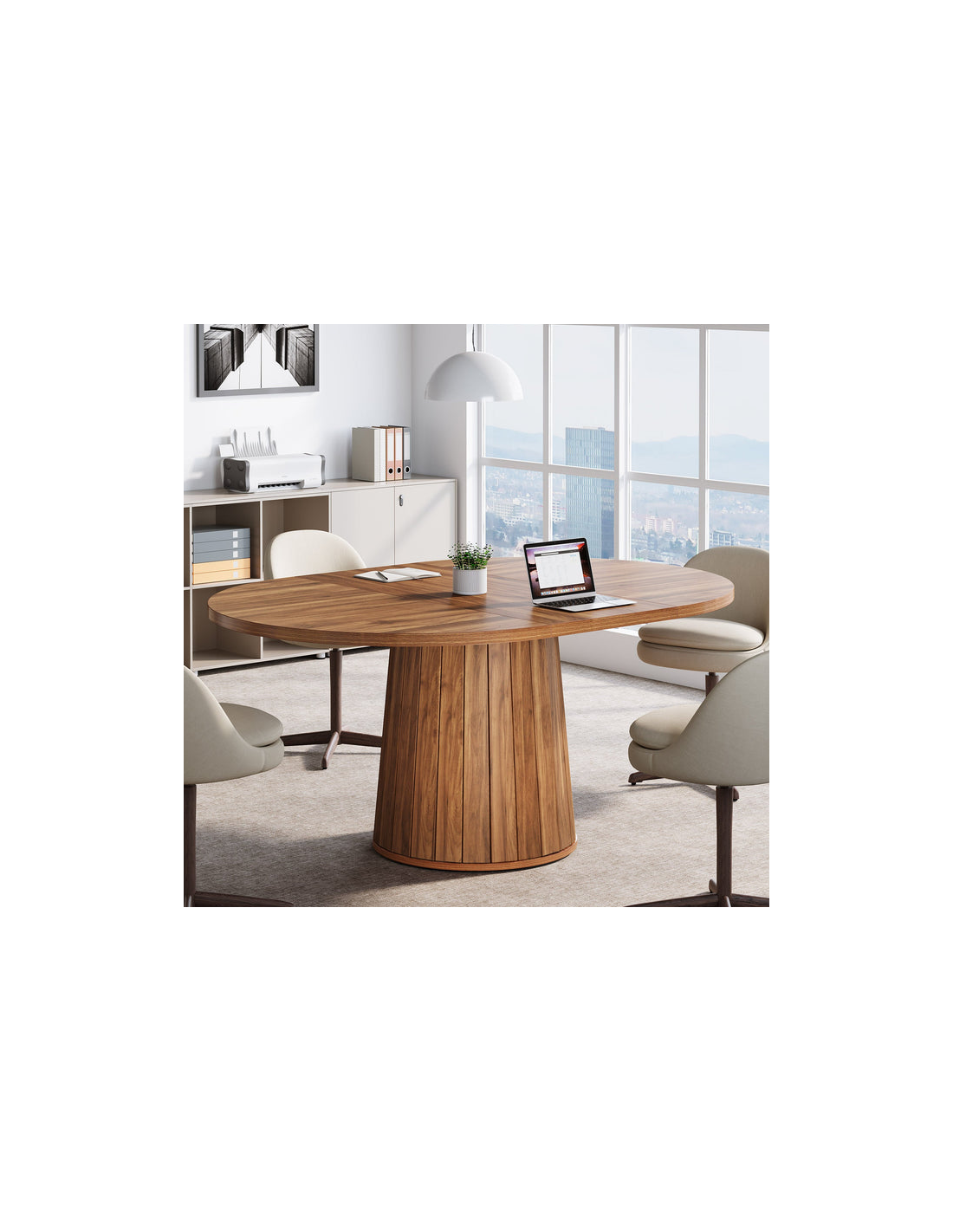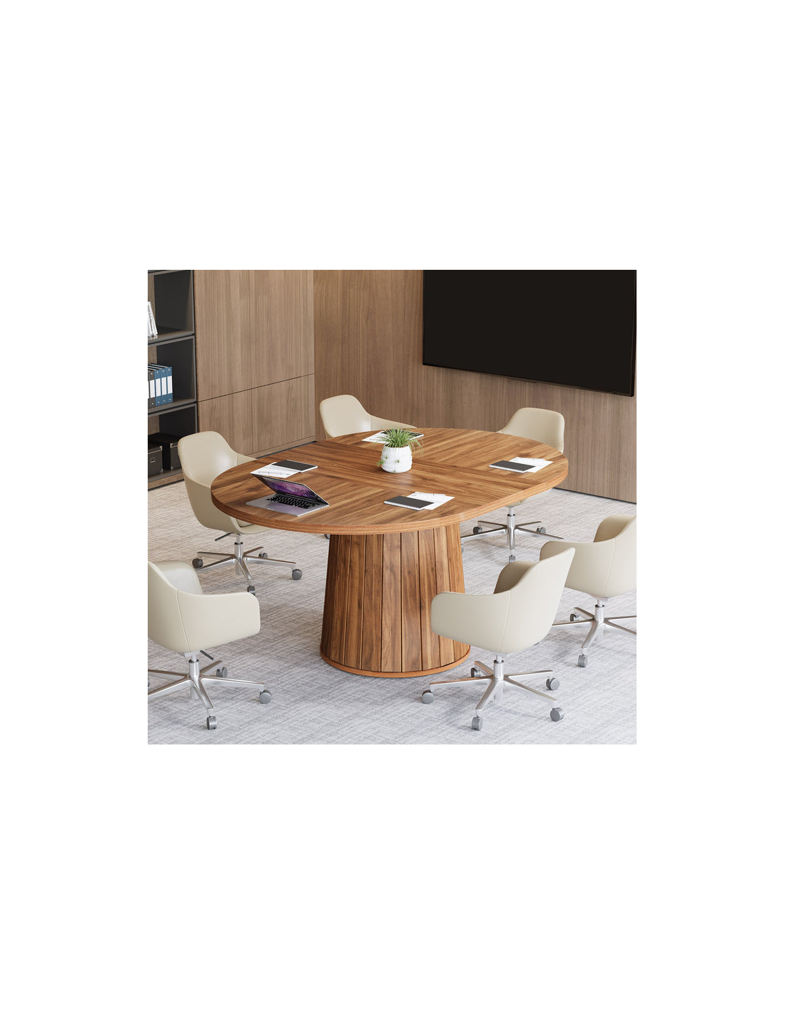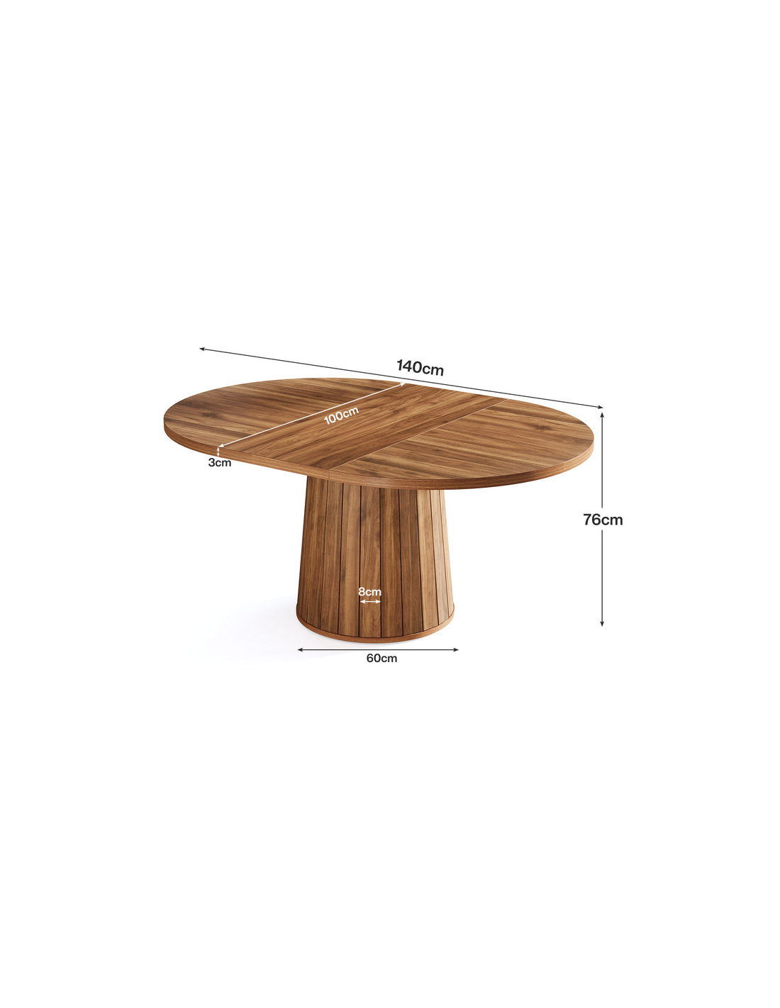 Ovalt spisebord udført i et design af naturbrun MDF. Bordet måler 76 cm i højden og 140 x 100 cm i bredde og dybde.