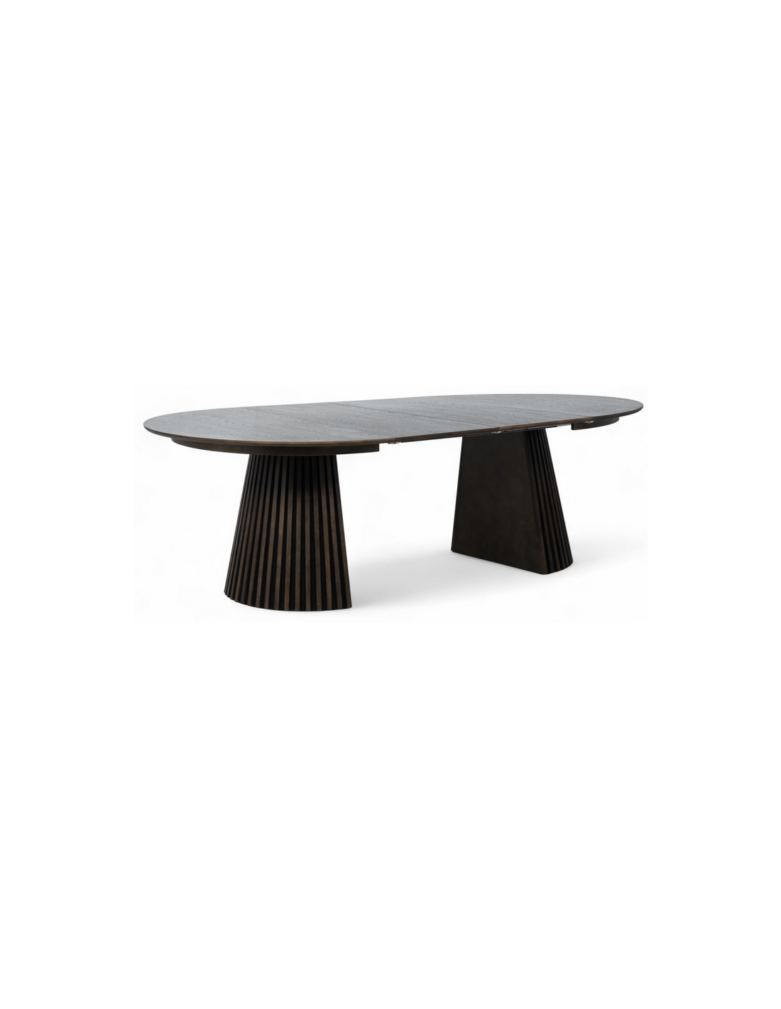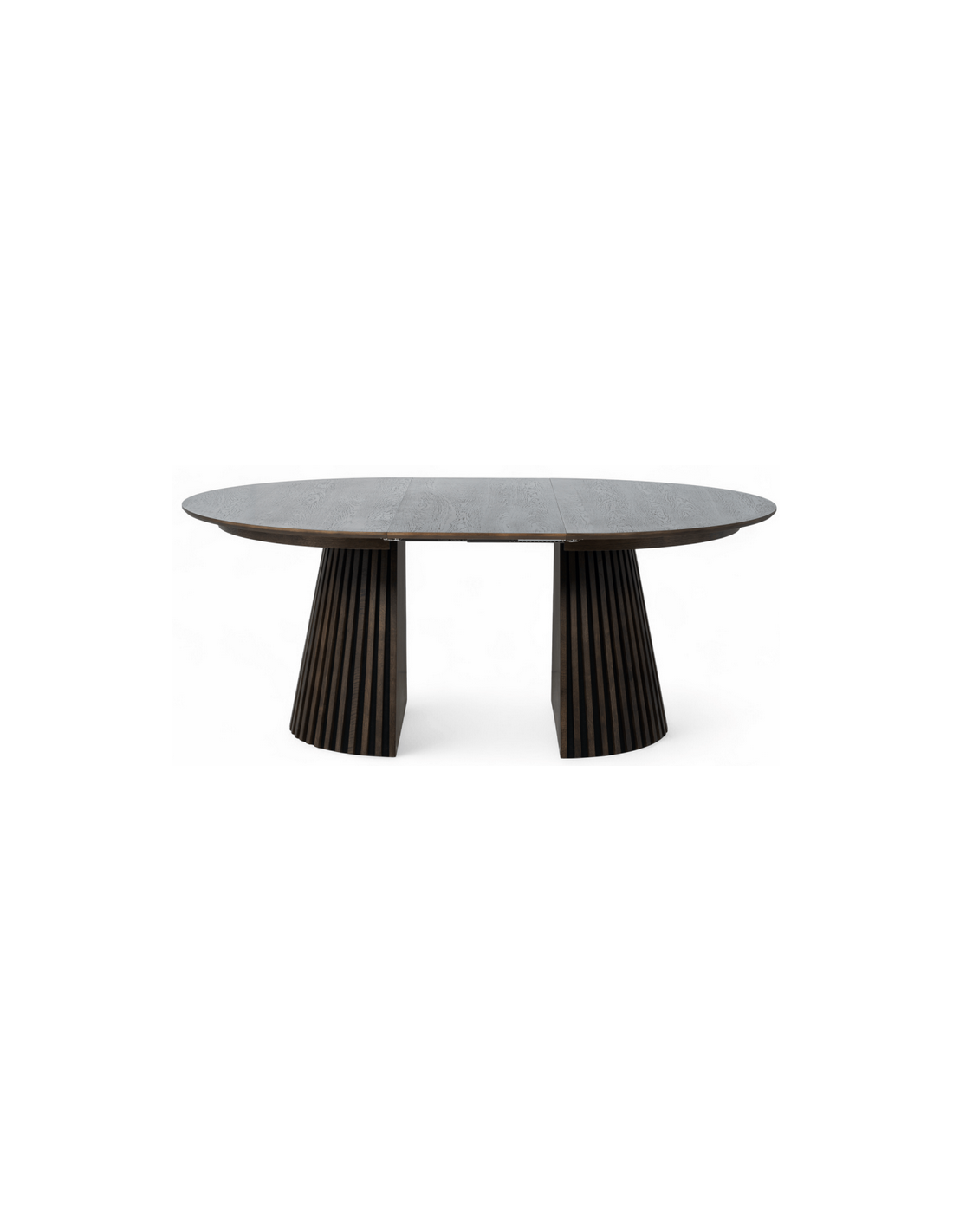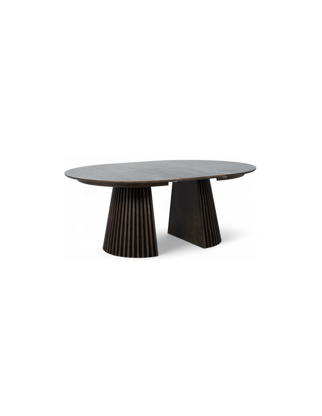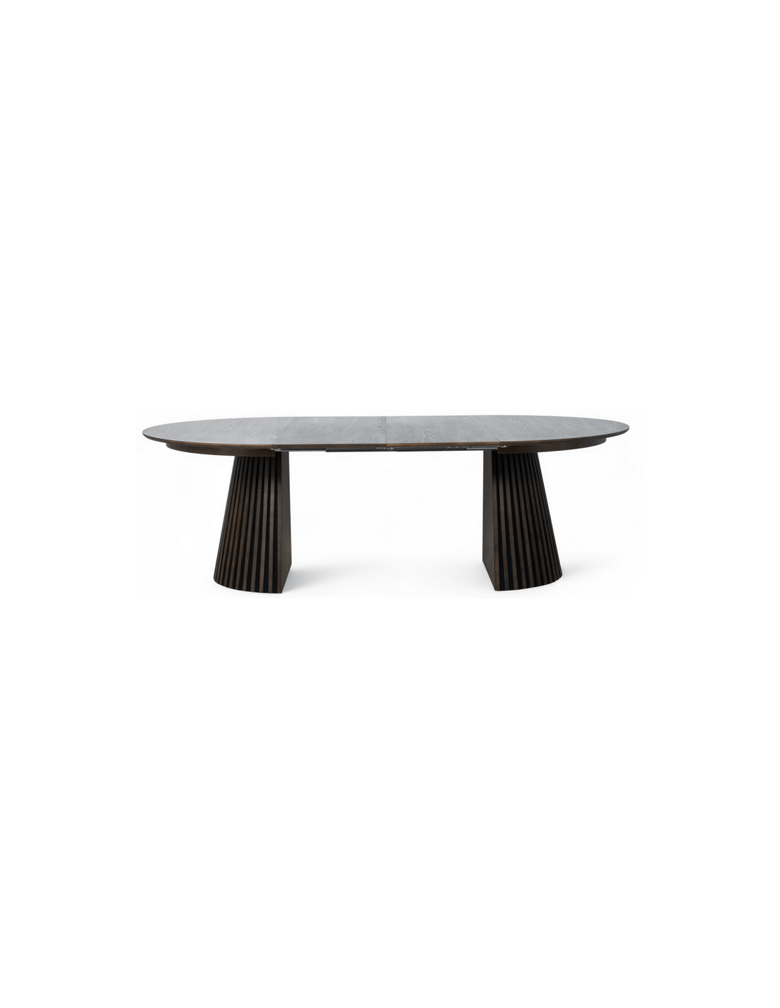 Bordets unikke fod består af stilfulde lodrette lameller, der tilfører et moderne og eksklusivt look, samtidig med at de giver stabilitet. Med den praktiske udtræksfunktion kan bordet nemt udvides, så der er plads til ekstra gæster – perfekt til både hverdag og festlige lejligheder.