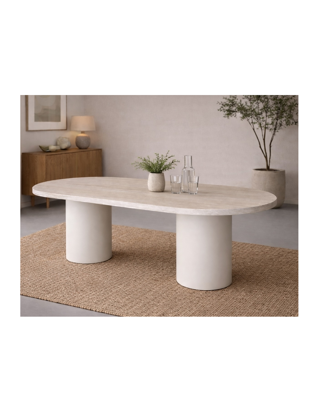 VIK Ovalt spisebord i mdf H75 x B200 x D100 cm - Beige/Travertin