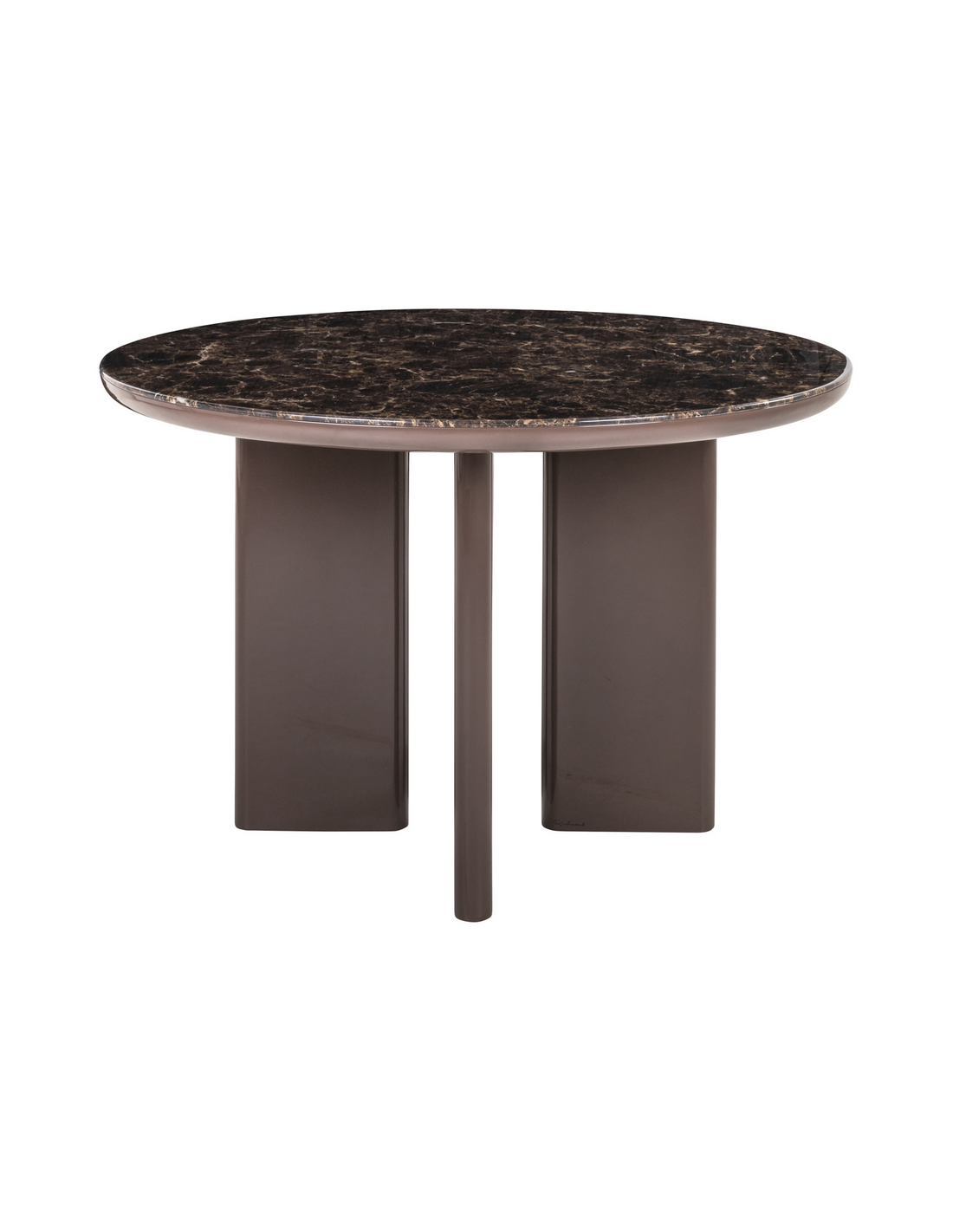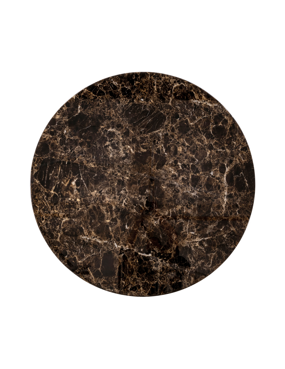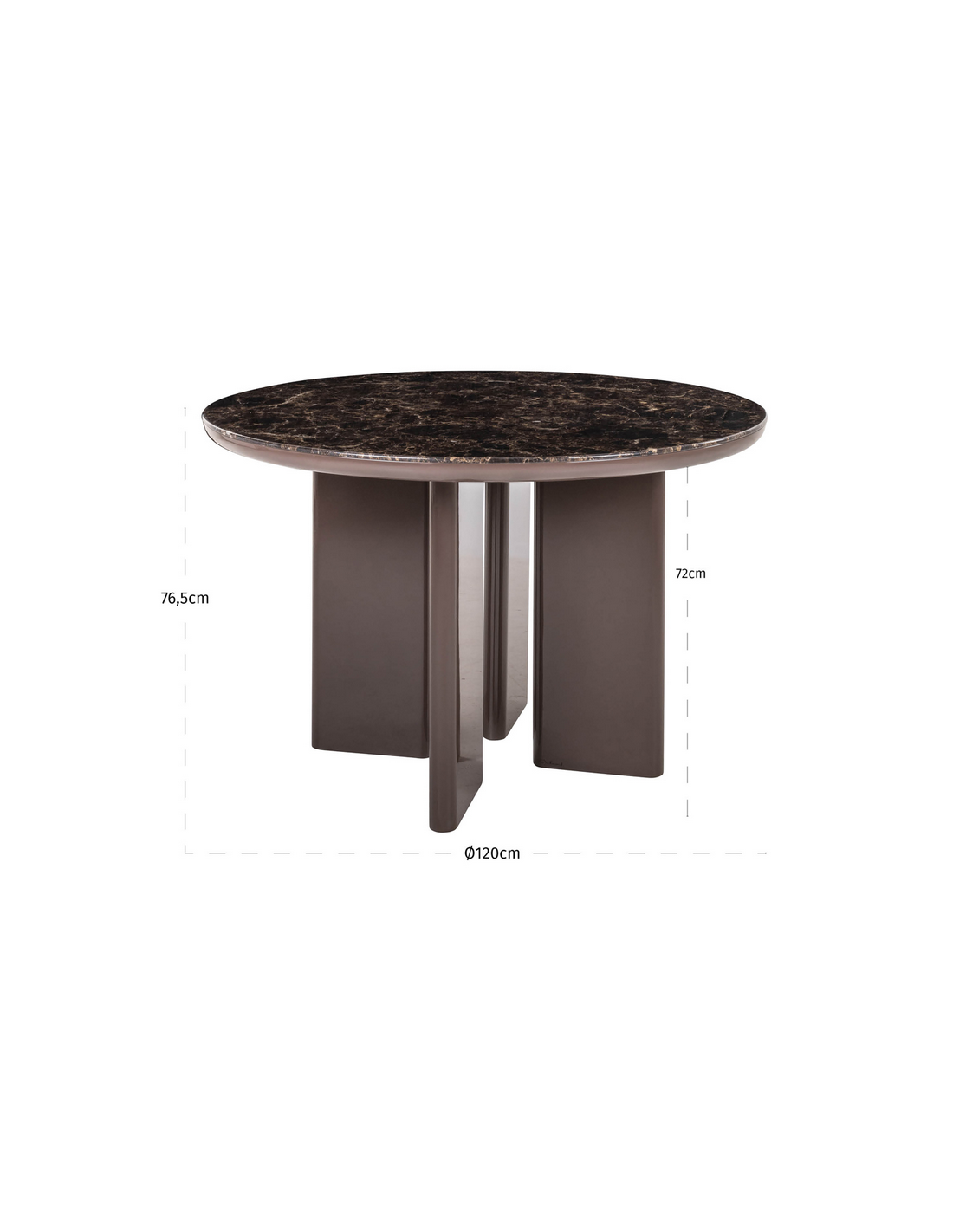ALMUNDI Rundt spisebord fra hollandske Richmond Interiors, udført i et design af brunlakeret MDF og med bordplade i keramik i brunt marmorlook. Spisebordet måler 76,5 cm i højden og 120 cm i diameter.