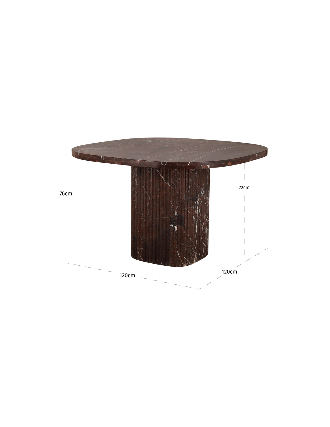 ORCHID Firkantet spisebord udført i et moderne design fremstillet af bordeaux farvet marmor. Spisebordet måler 76 cm i højden og 120 x 120 cm i bredde og dybde.