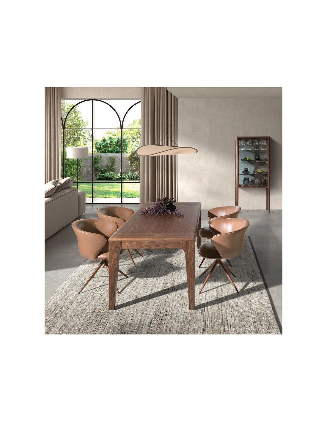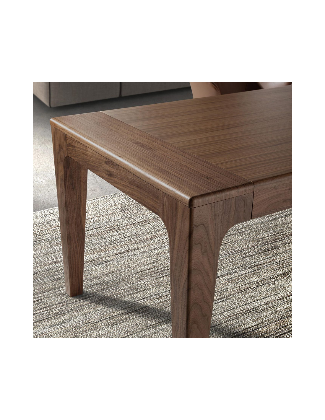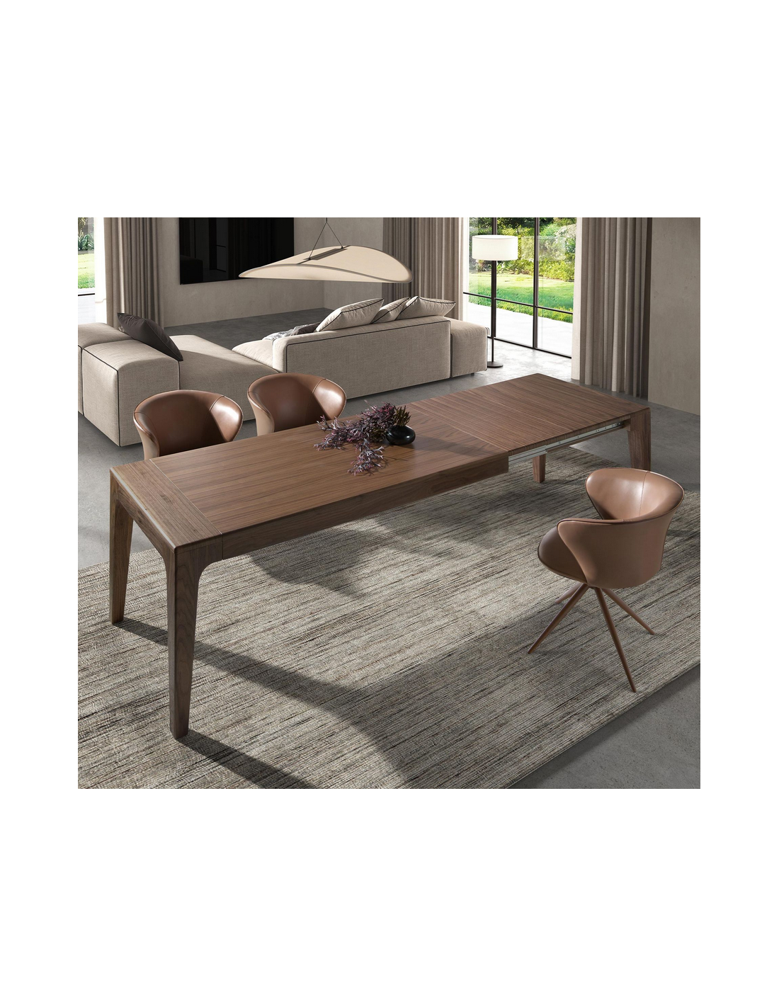 Spisebord med udtræk udført i et moderne design fra Angel Cerdá. Spisebordet er fremstillet i af valnøddefinér. Spisebordet måler 75 cm i højden og 200 - 300 x 90 cm i bredde og dybde. Forlængerpladerne opbevares i bordet når de ikke er i brug.