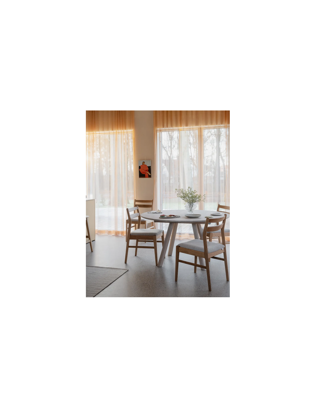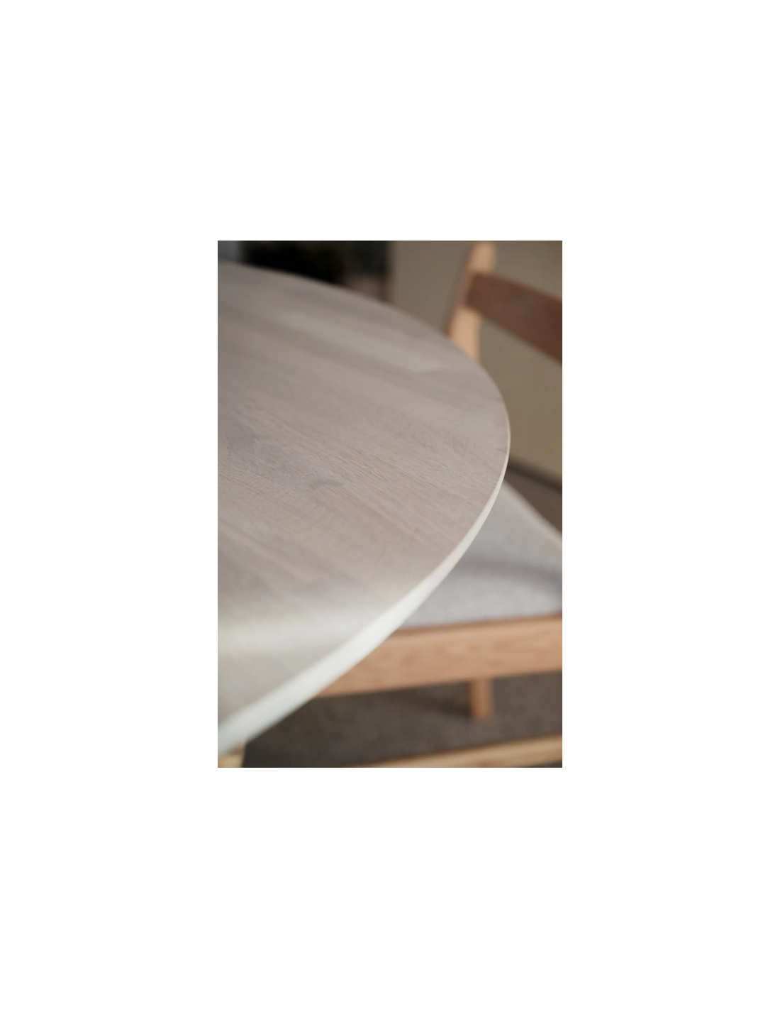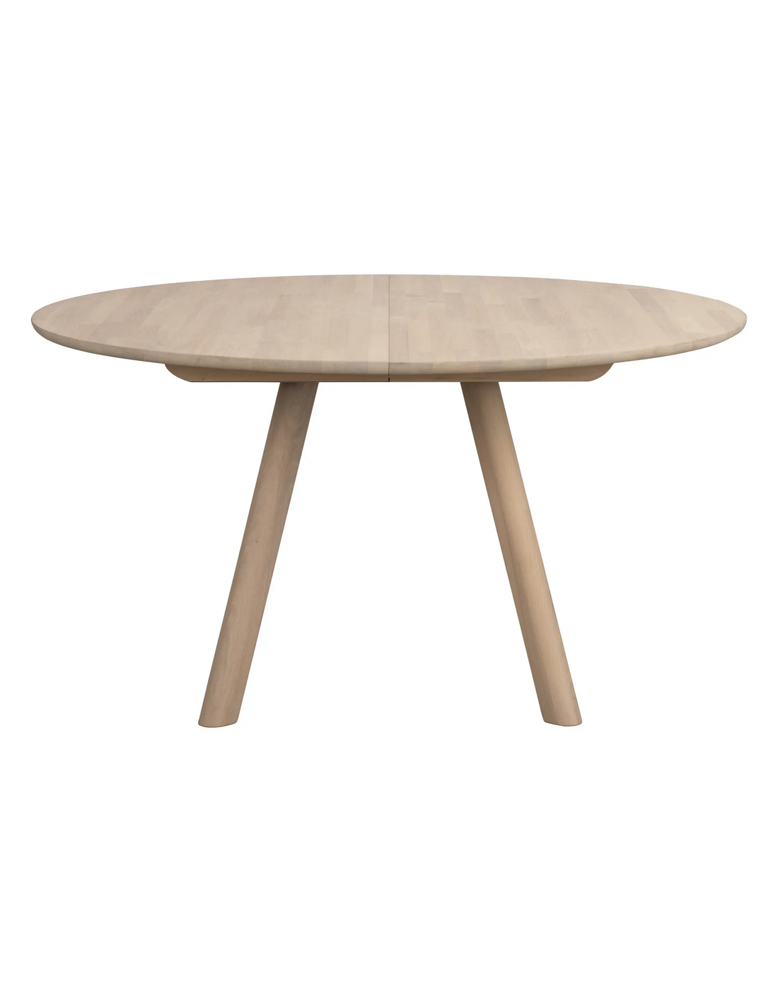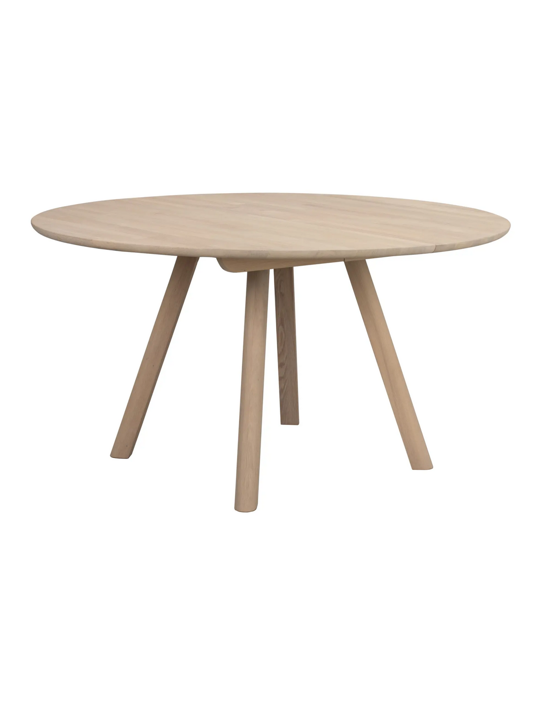 Clapperton rundt spisebord fra Svenske Rowico Home, udført i et moderne og Skandinavisk design af white wash egetræ. Spisebordet måler 75 cm i højden og 140 cm i bredde og dybde. Der kan fås tillægsplader til spisebordet, således det kan forlænges med 50 cm.