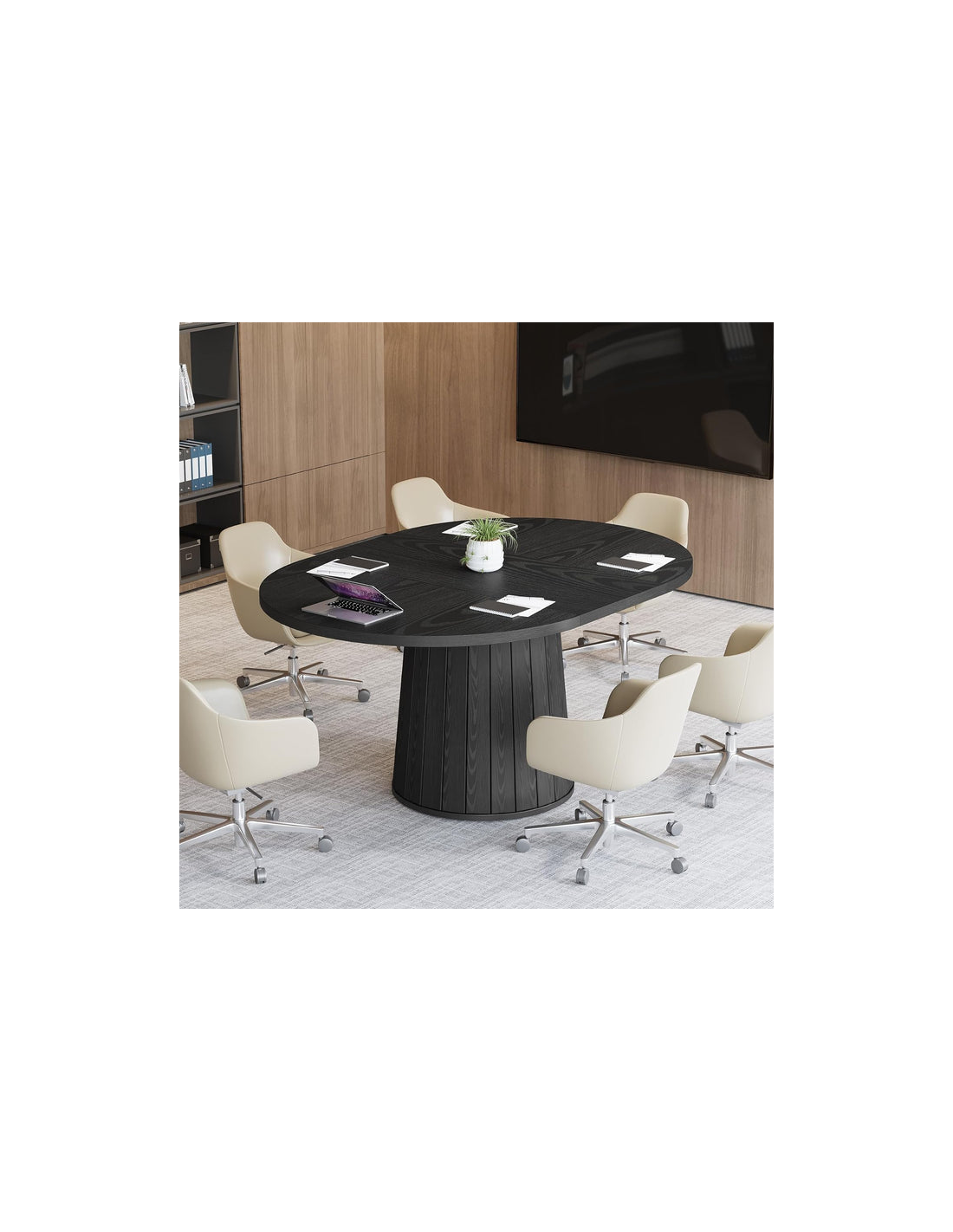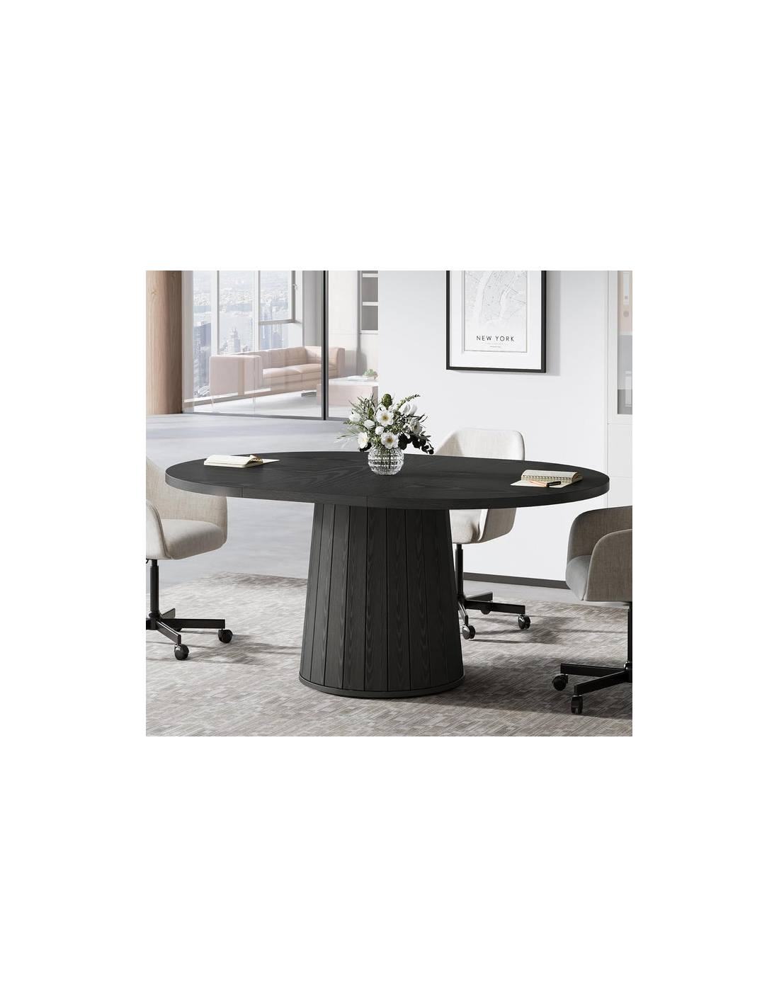 Ovalt spisebord i MDF og møbelplade 140 x 100 cm - Sort