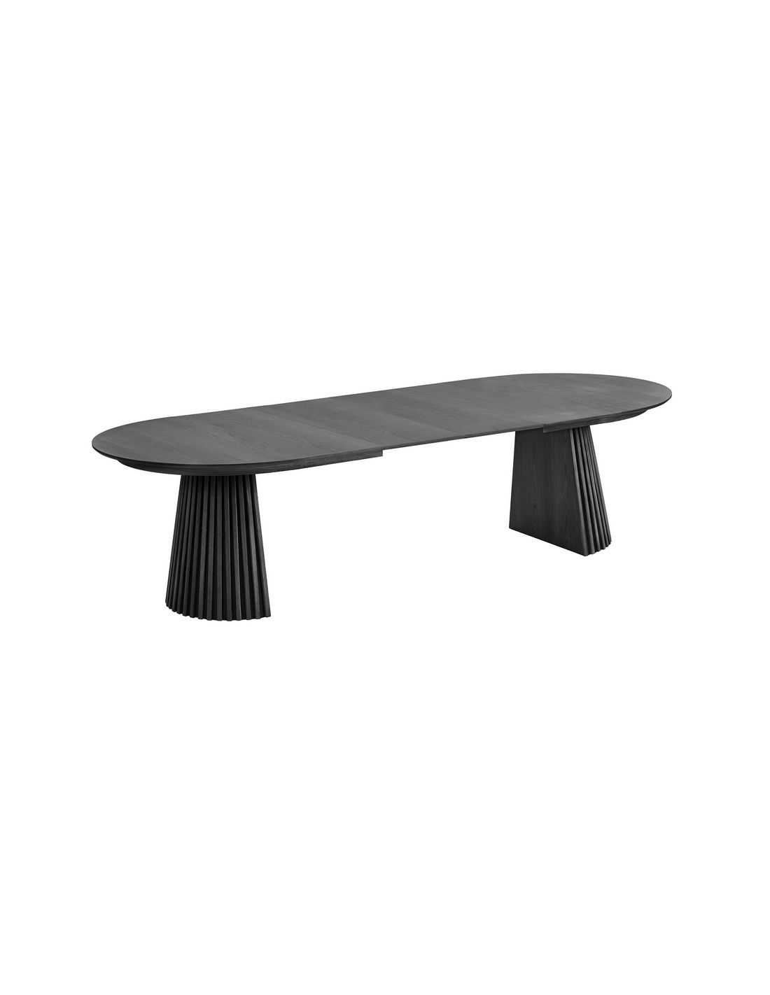 Ovalt spisebord med udtræk i MDF og egetræsfinér 120 x 200 - 250 - 300 cm - Gråsort