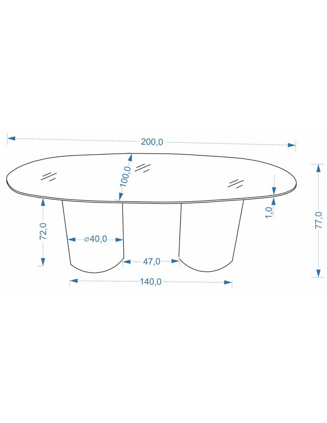 • Frihøjde under bordplade: 72 cm