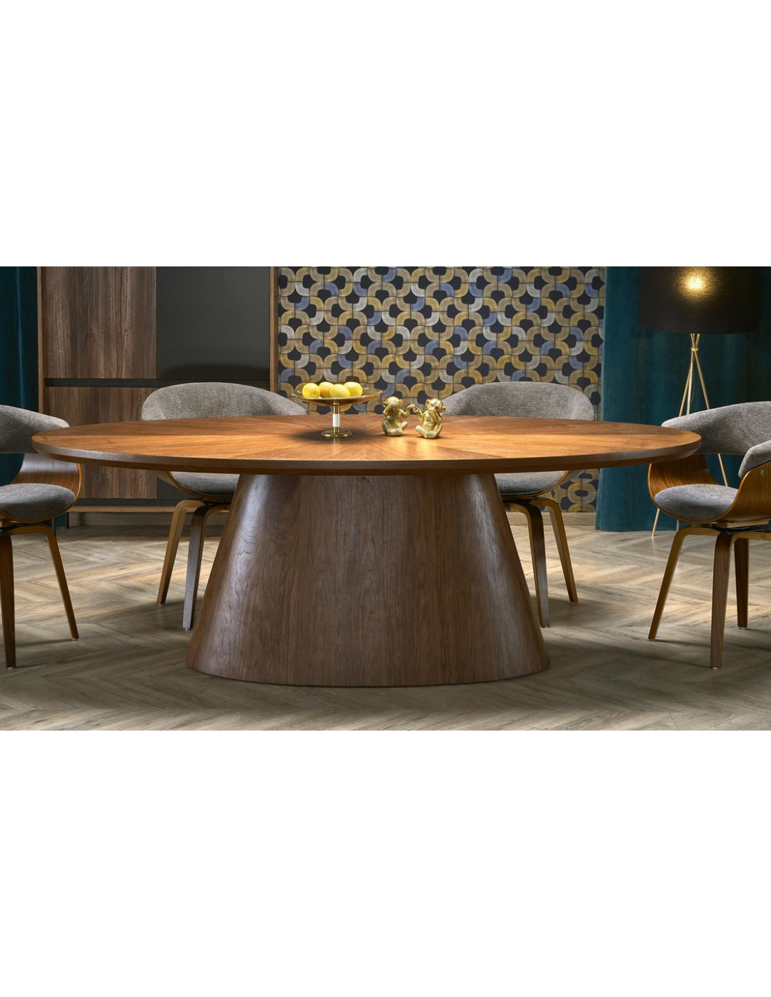 Ovalt spisebord i MDF og valnøddefinér H76 B220 x D98 cm - Valnød