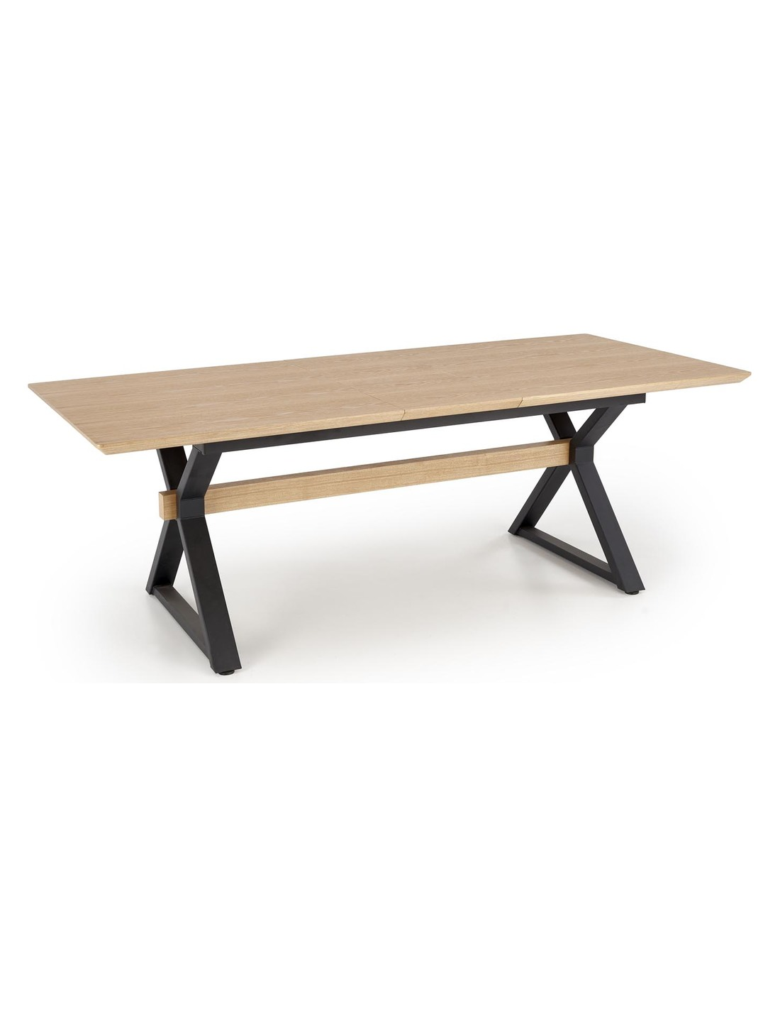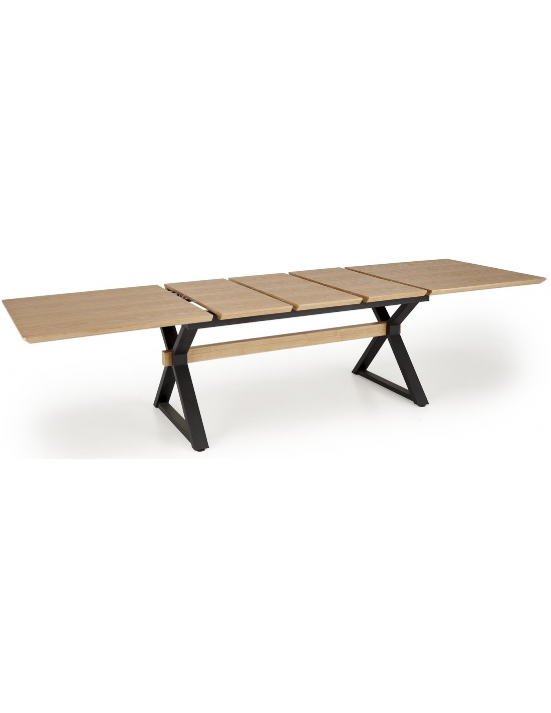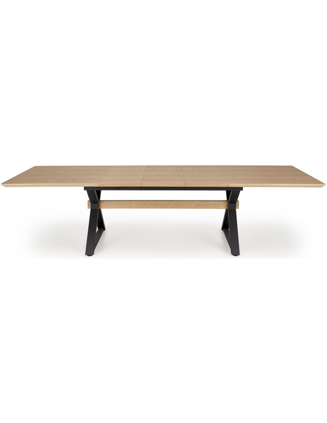 Spisebord med tillægsplader i metal og MDF H75 x B180 - 300 x D100 cm - Sort/Eg