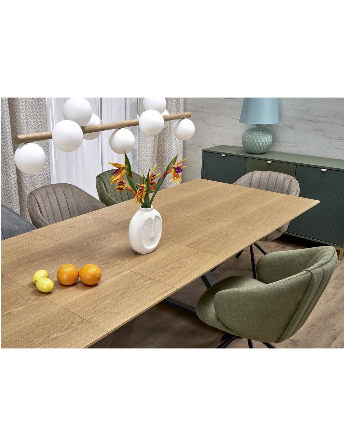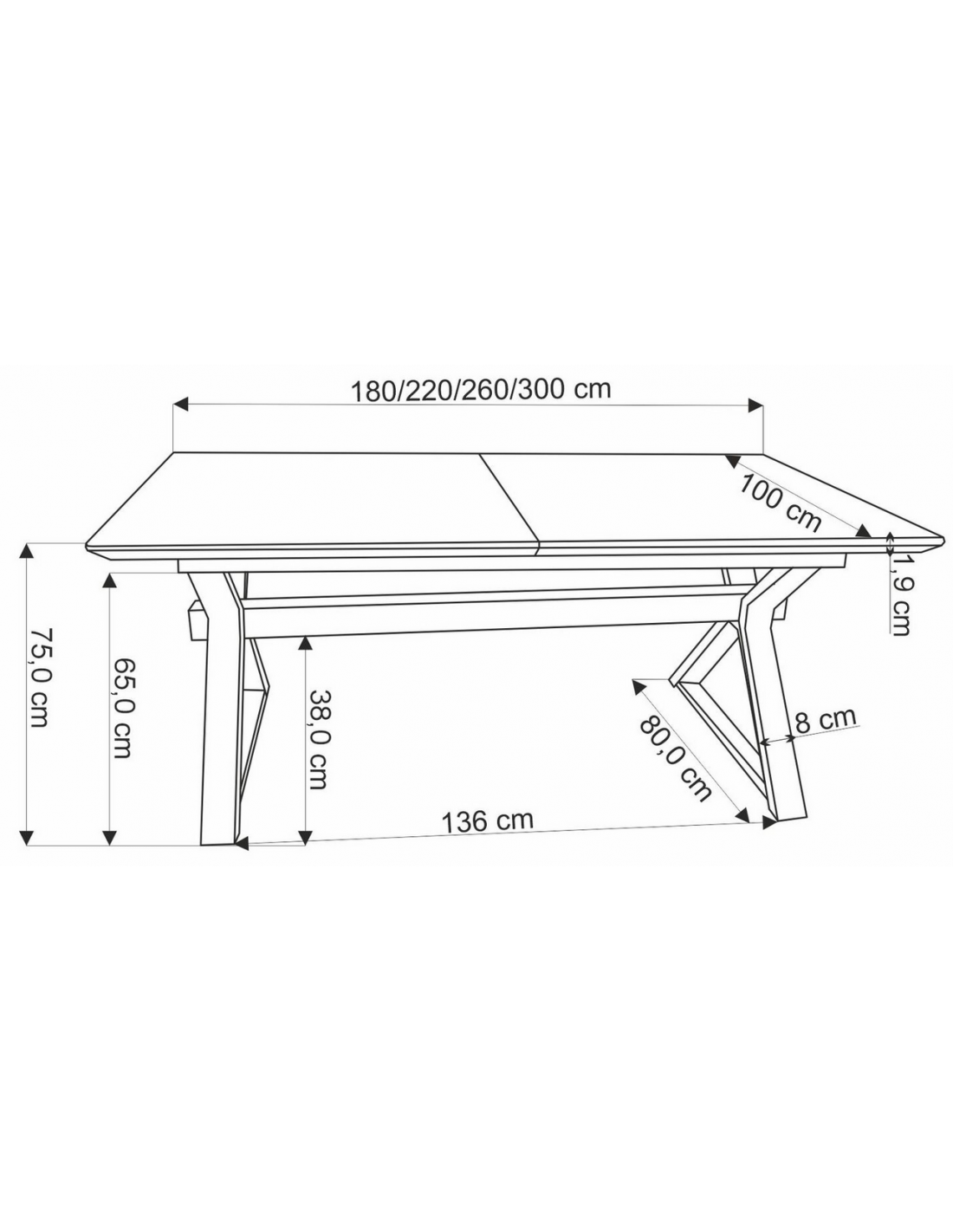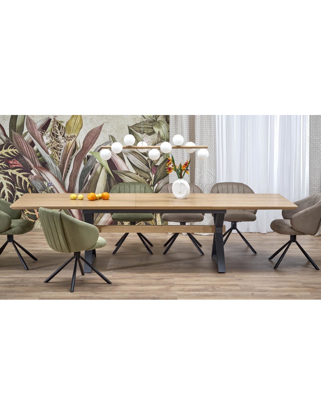 Spisebord med tillægsplader i metal og MDF H75 x B180 - 300 x D100 cm - Sort/Eg