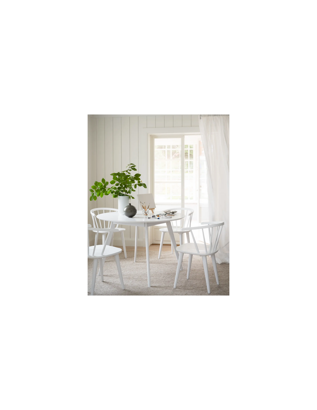 Carmen sæt med 2 x spisebordsstole med armlæn, udført i et design fremstillet af hvidlakeret gummitræ. Stolene måler 76 cm i højden over ryggen og med siddehøjde på 45 cm.