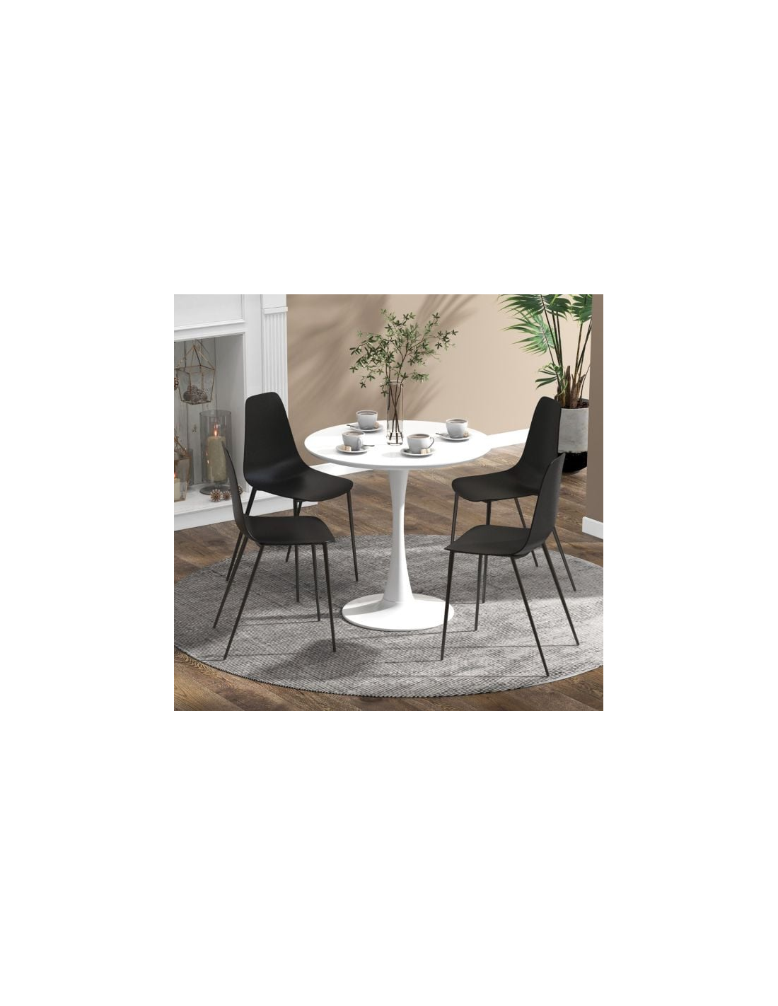 Sæt med 4 spisebordsstole udført i et stilrent design af sortlakeret metal og sort polycarbonat. Stolene måler 88,5 cm i højden over ryggen og med en siddehøjde på 45,5 cm.