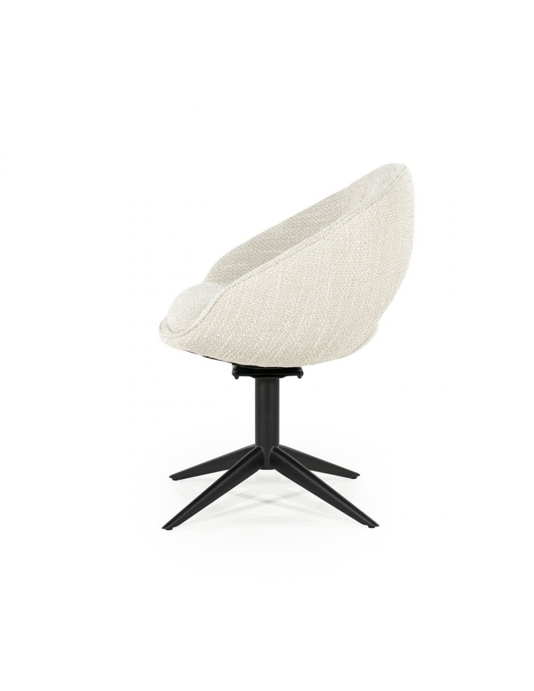 NOL Spisebordsstol med drejefod, udført i et moderne design af sortlakeret stål og beige bouclé polyester. Stolen måler 81 cm over ryggen og med en siddehøjde på 51 cm.