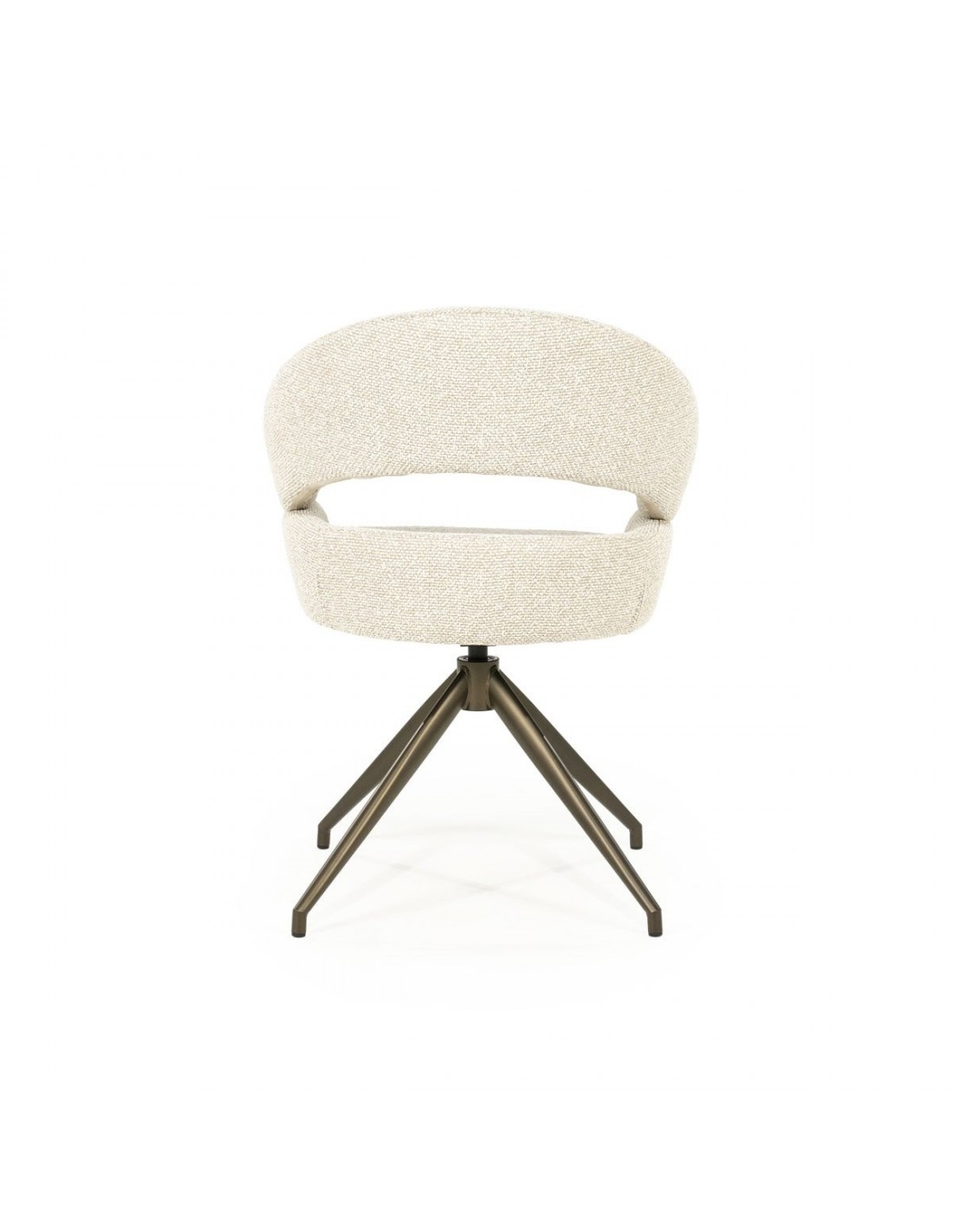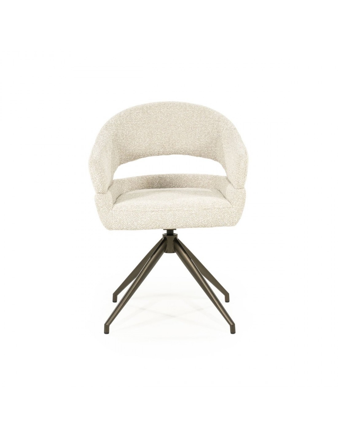 HAILEY Spisebordsstol med armlæn og drejefod, udført i et moderne design af mat bronzelakeret stål og beige bouclé polyester. Stolen måler 81 cm over ryggen og med en siddehøjde på 49 cm.