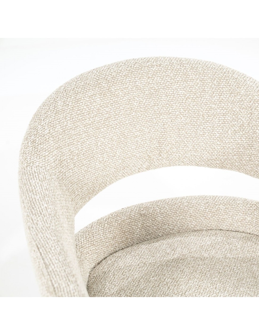 HAILEY Spisebordsstol med armlæn og drejefod i stål og bouclé polyester H81 cm - Mat bronze/Beige