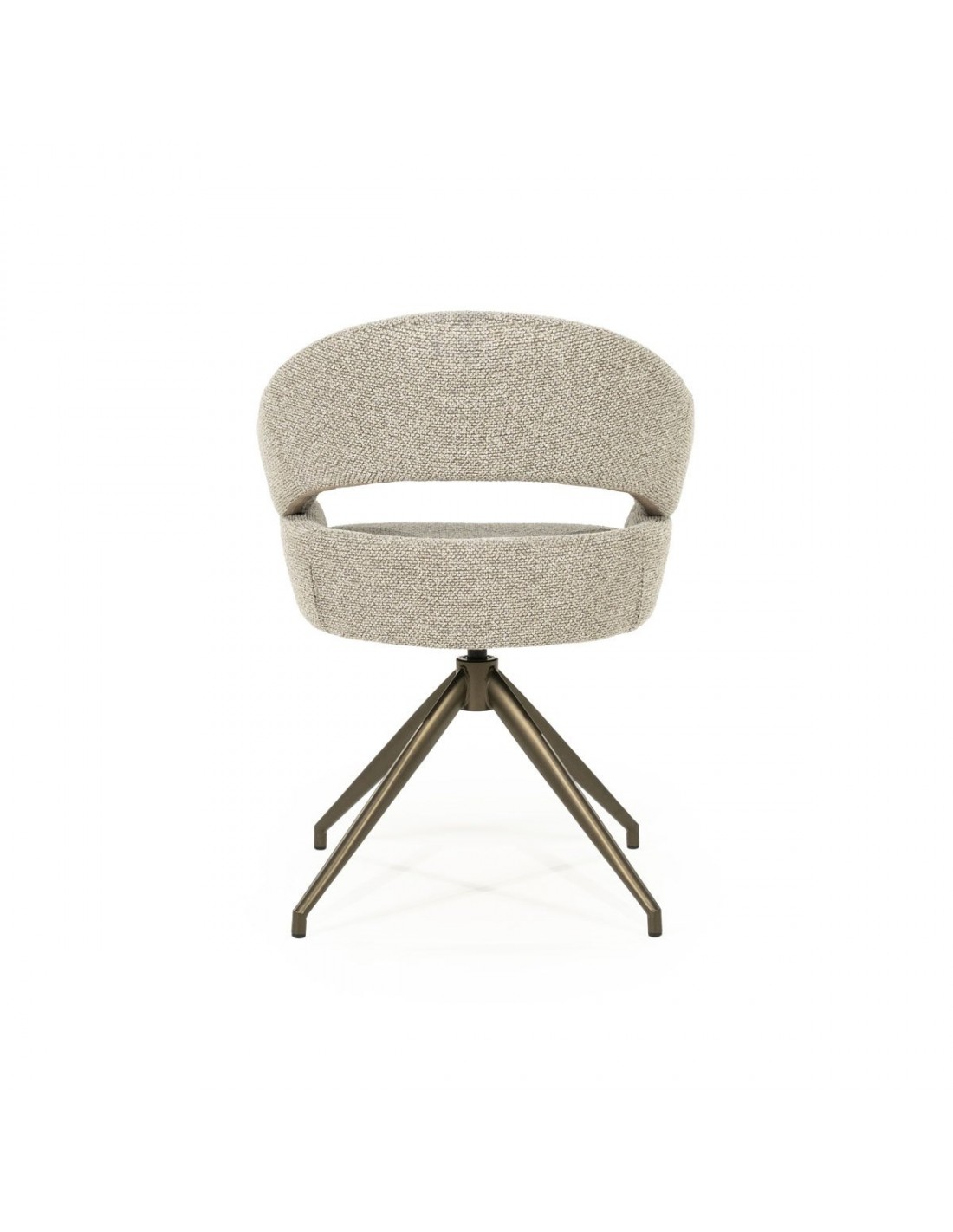 HAILEY Spisebordsstol med armlæn og drejefod, udført i et moderne design af mat bronzelakeret stål og taupefarvet bouclé polyester. Stolen måler 81 cm over ryggen og med en siddehøjde på 49 cm.