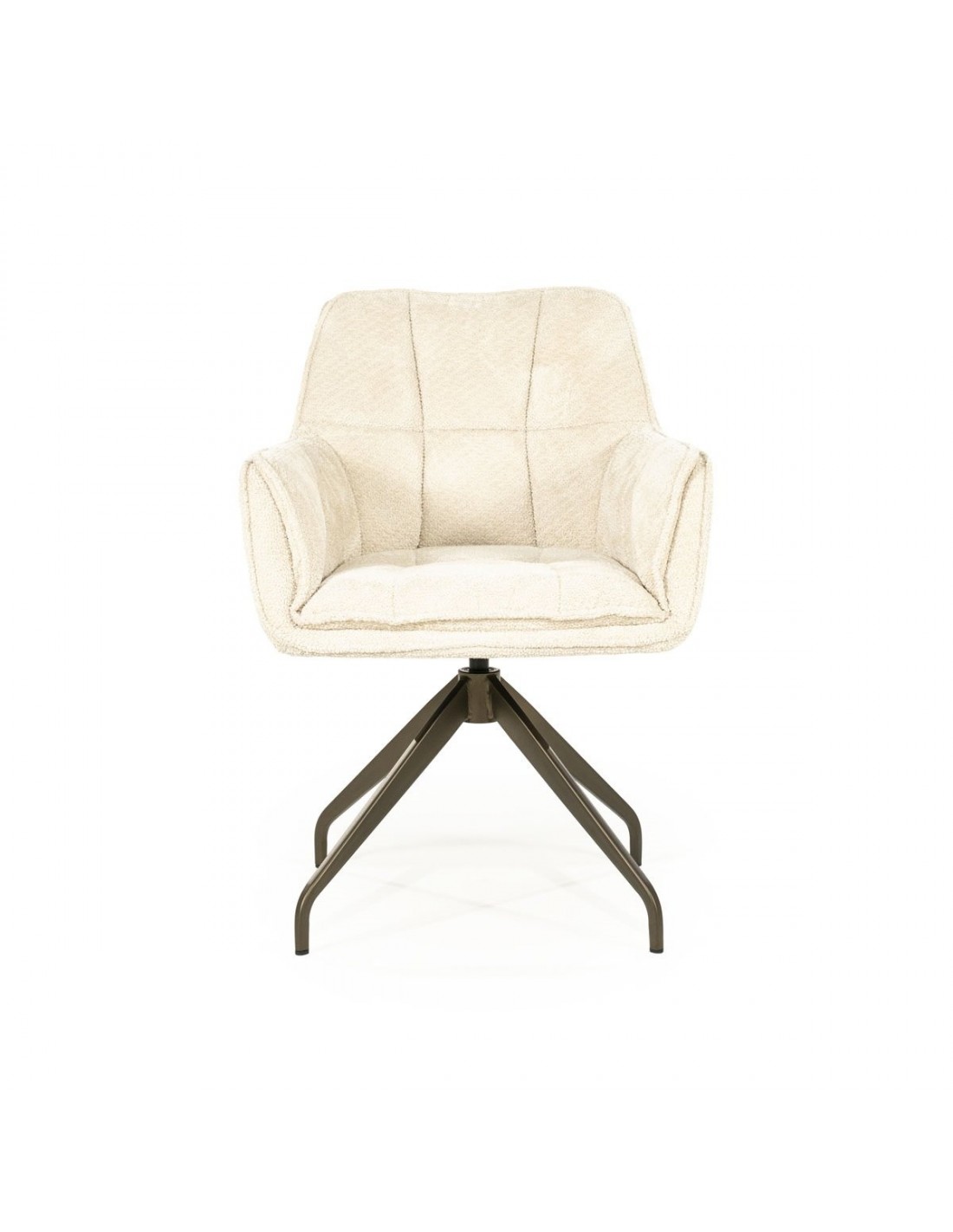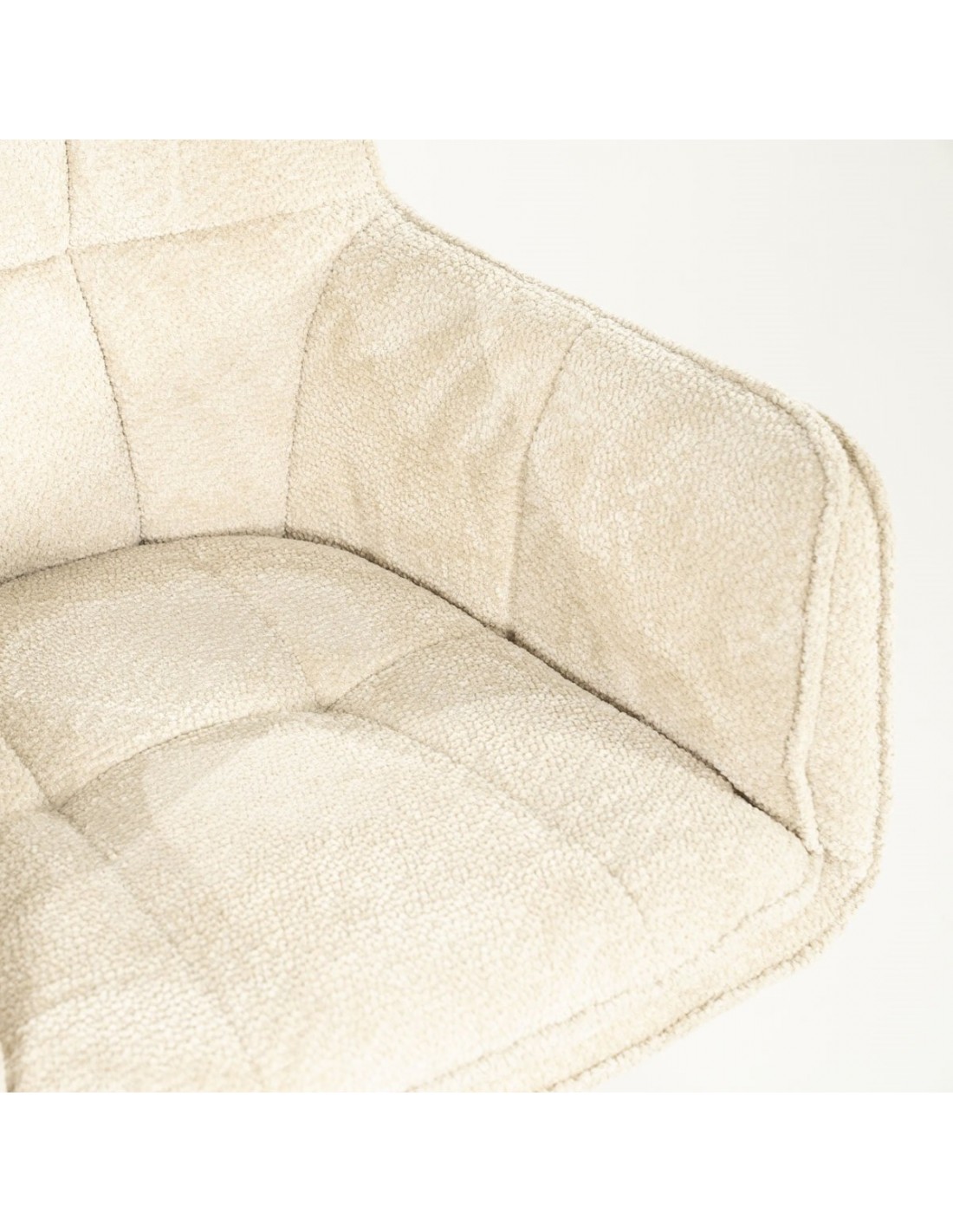 HUGO Spisebordsstol med armlæn og drejefod i stål og bouclé polyester H87 cm - Mat bronze/Beige