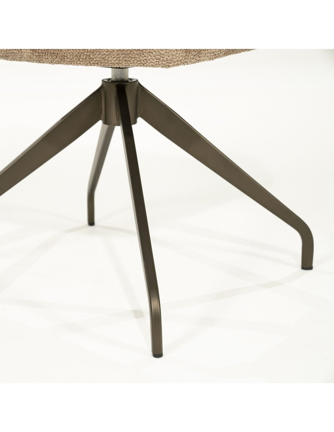 HUGO Spisebordsstol med armlæn og drejefod, udført i et moderne design af mat bronzelakeret stål og taupefarvet bouclé polyester. Stolen måler 87 cm over ryggen og med en siddehøjde på 50 cm.