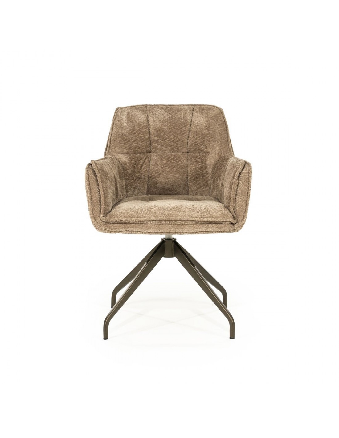 HUGO Spisebordsstol med armlæn og drejefod i stål og bouclé polyester H87 cm - Mat bronze/Taupe