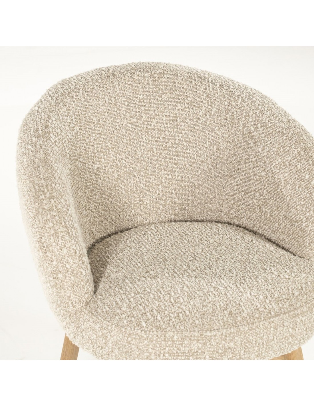 LIVIA Spisebordsstol med drejefod i egetræ og bouclé polyester H80 cm - Eg/Taupe