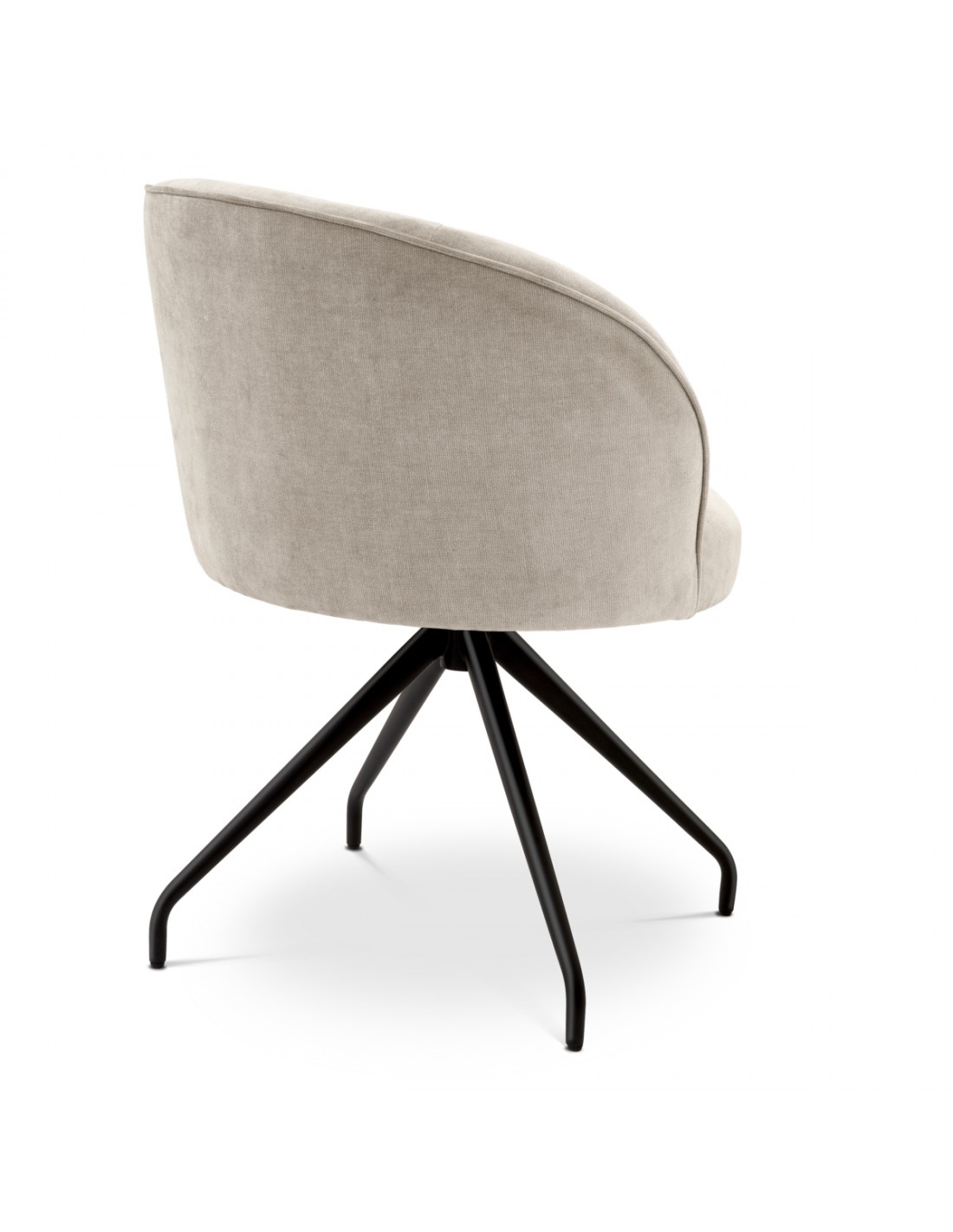 Eichholtz Masters spisebordsstol med armlæn og drejefod, udført i et moderne og luksuriøst design af sortlakeret stål og sandfarvet polyester. Stolen måler 77 cm i højden over ryggen og med en siddehøjde på 48 cm.
