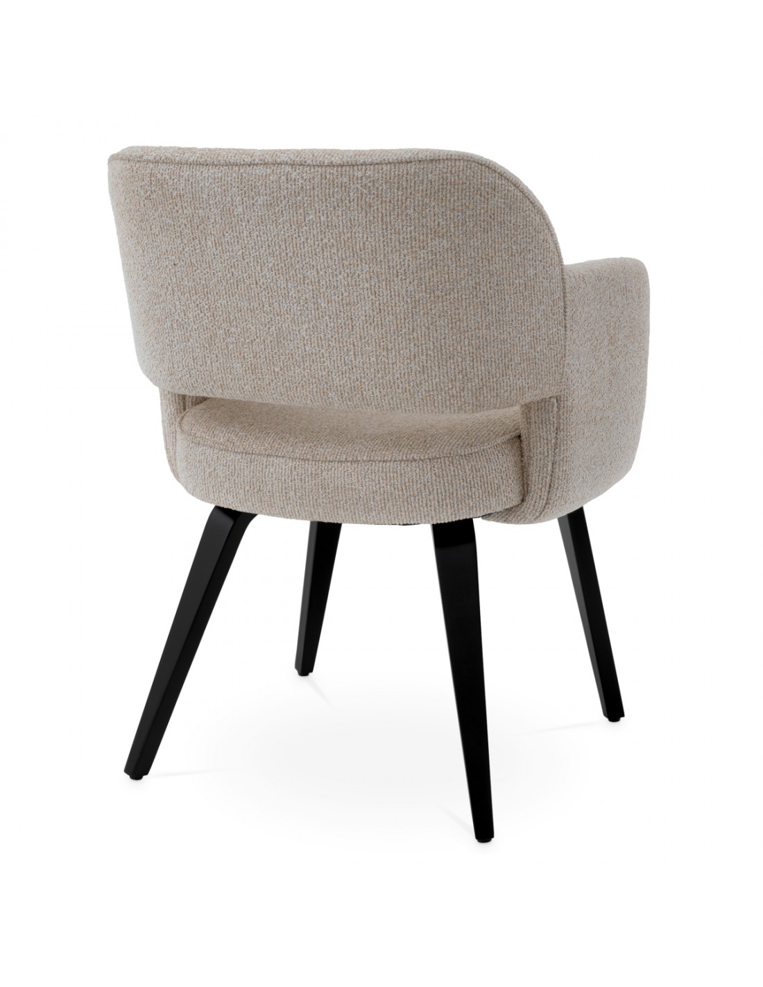 Eichholtz Park spisebordsstol med armlæn, udført i et moderne og luksuriøst design af sortlakeret bøgetræ og sæde i beige viscose (60% viscose/40% polyester). Stolen måler 80 cm i højden over ryggen og med en siddehøjde på 46 cm.