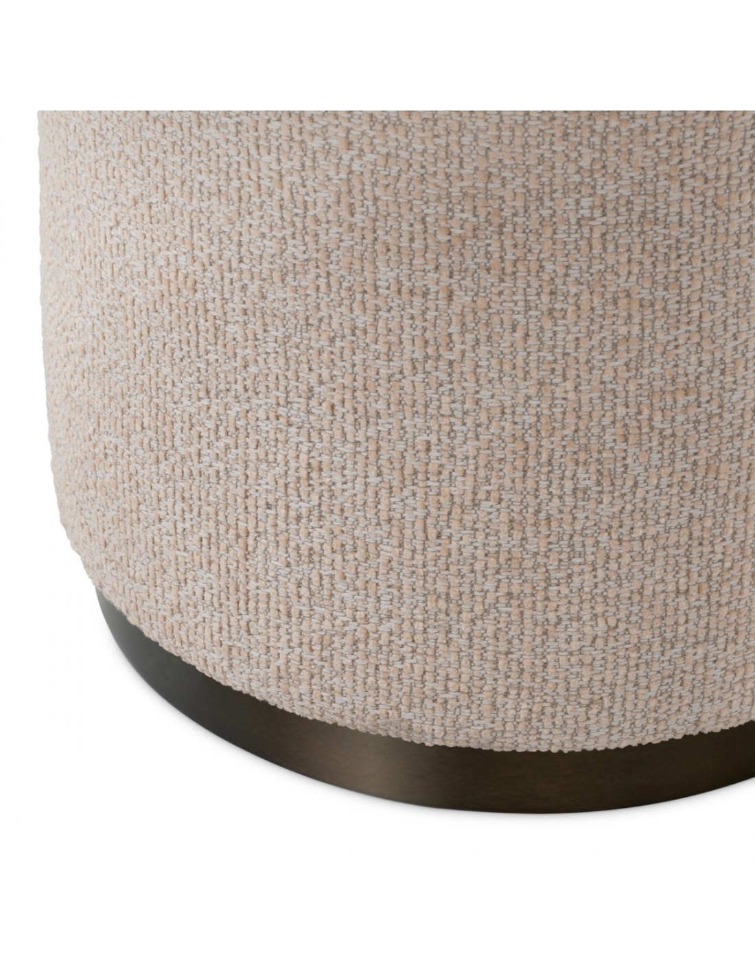 Eichholtz Marly spisebordsstol med armlæn og drejefod, udført i et moderne og luksuriøst design af bronzelakeret stål og sæde i beige viscose (60% viscose/40% polyester). Stolen måler 76 cm i højden over ryggen og med en siddehøjde på 51 cm.