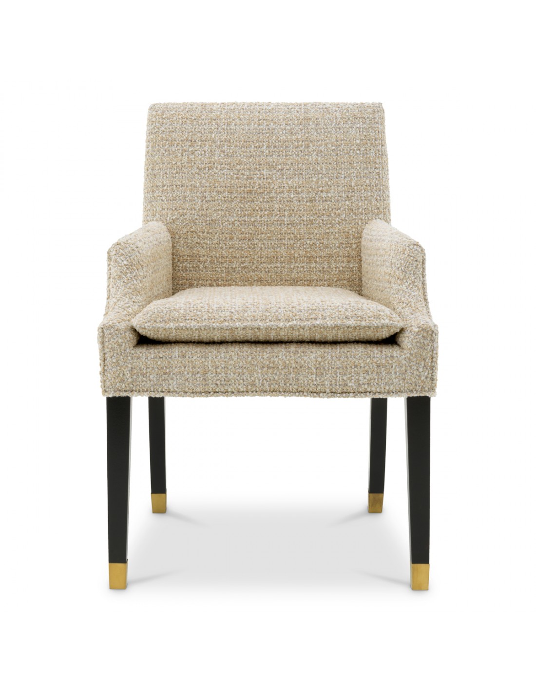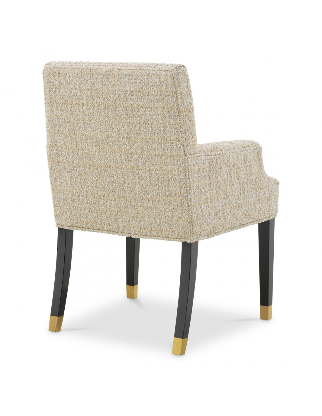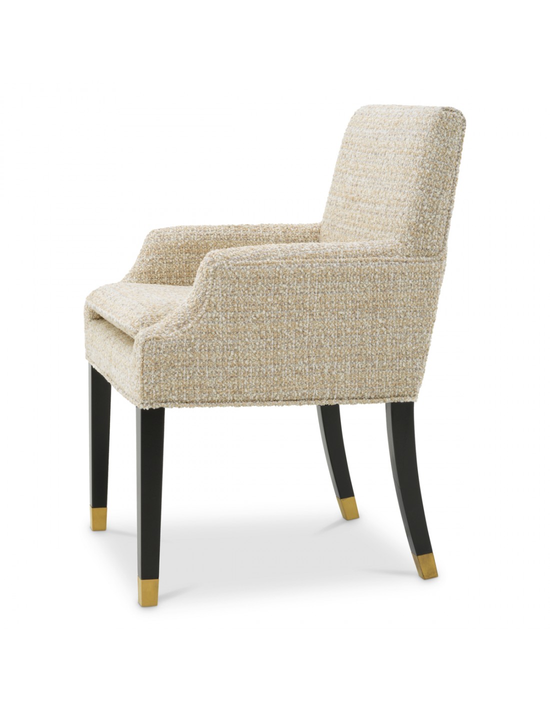 Eichholtz Clayton spisebordsstol med armlæn i polyester H90 cm - Sort/Messing/Beige