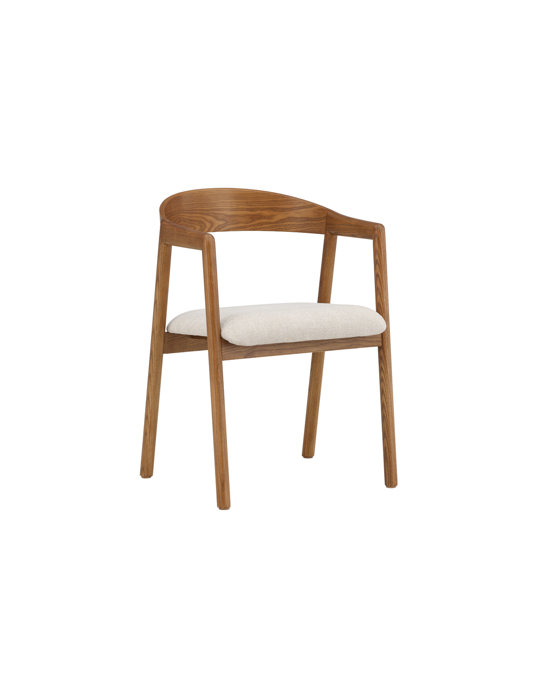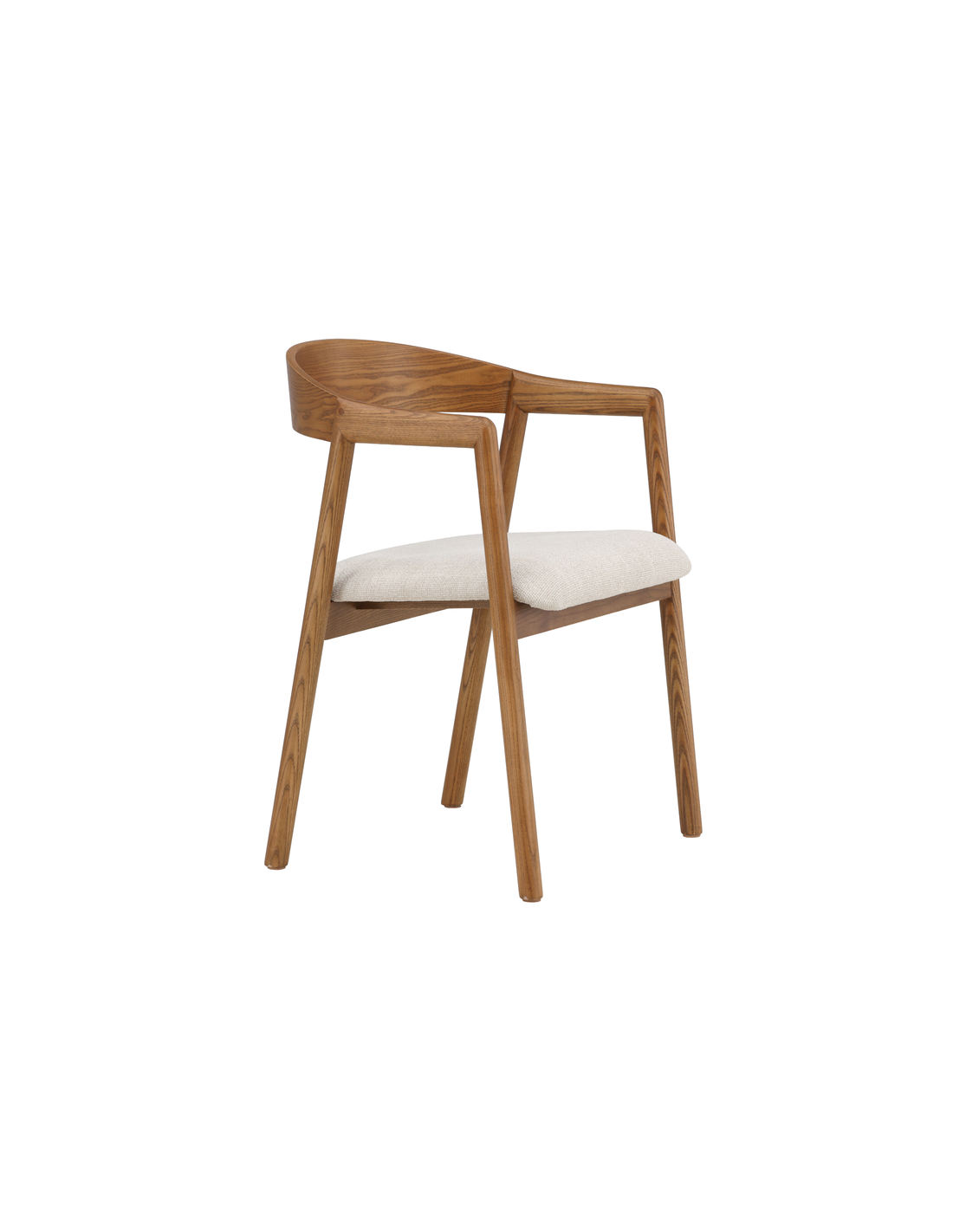 Sæt med 2 x LANGO Spisebordsstole i asktræ og polyester H77 cm - Brun/Natur