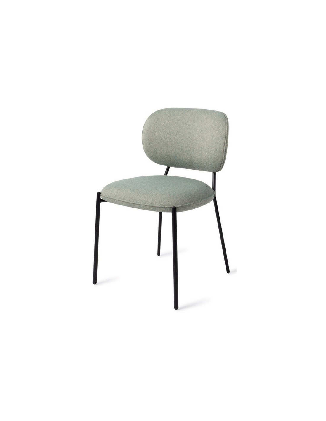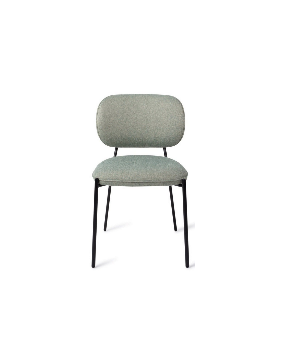 YOICHI Spisebordsstol udført i et moderne design, fremstillet af sortlakeret metal og med sæde af grøn polyester. Stolen måler 80,5 cm i højden over ryggen og med siddehøjde på 48 cm.